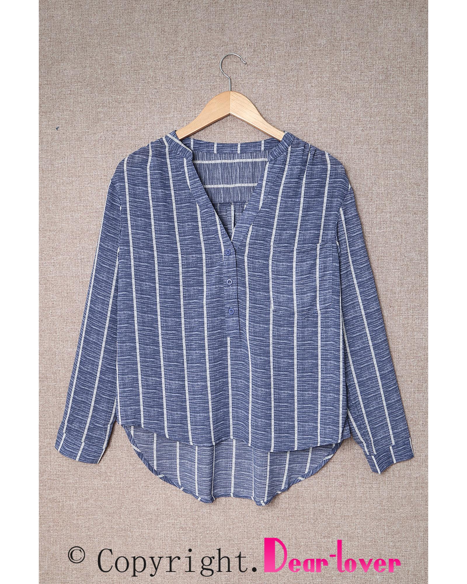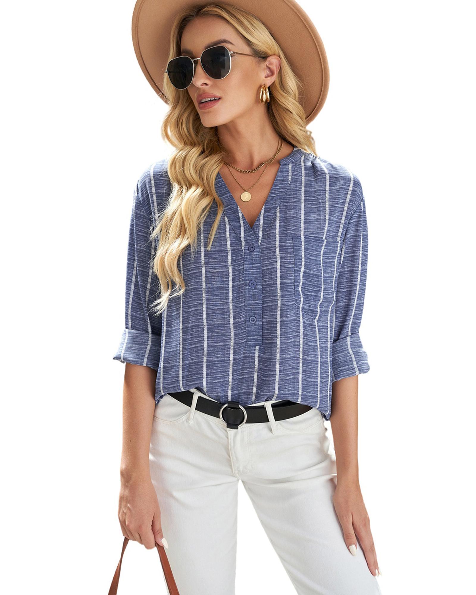 • Stylish and versatile Striped V Neck Pocket Long Sleeve Top