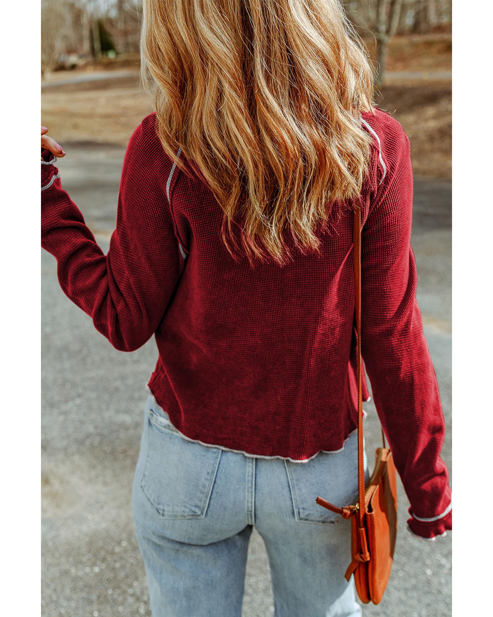 Azura Exchange Textured Round Neck Long Sleeve Top - S
