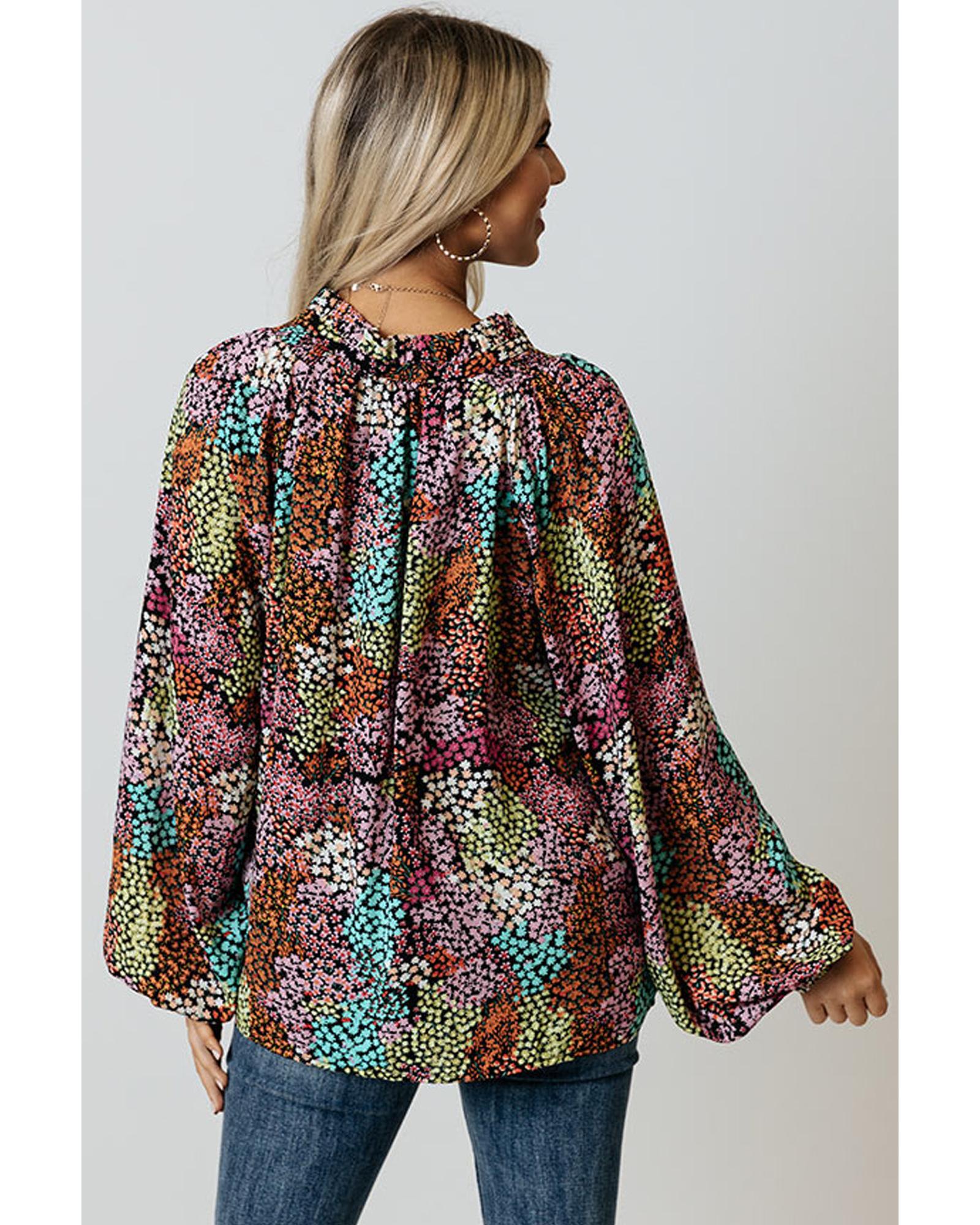 Azura Exchange Vibrant Floral Tie V Neck Puff Sleeve Blouse - S Original price was: $60.99.Current price is: $32.99.