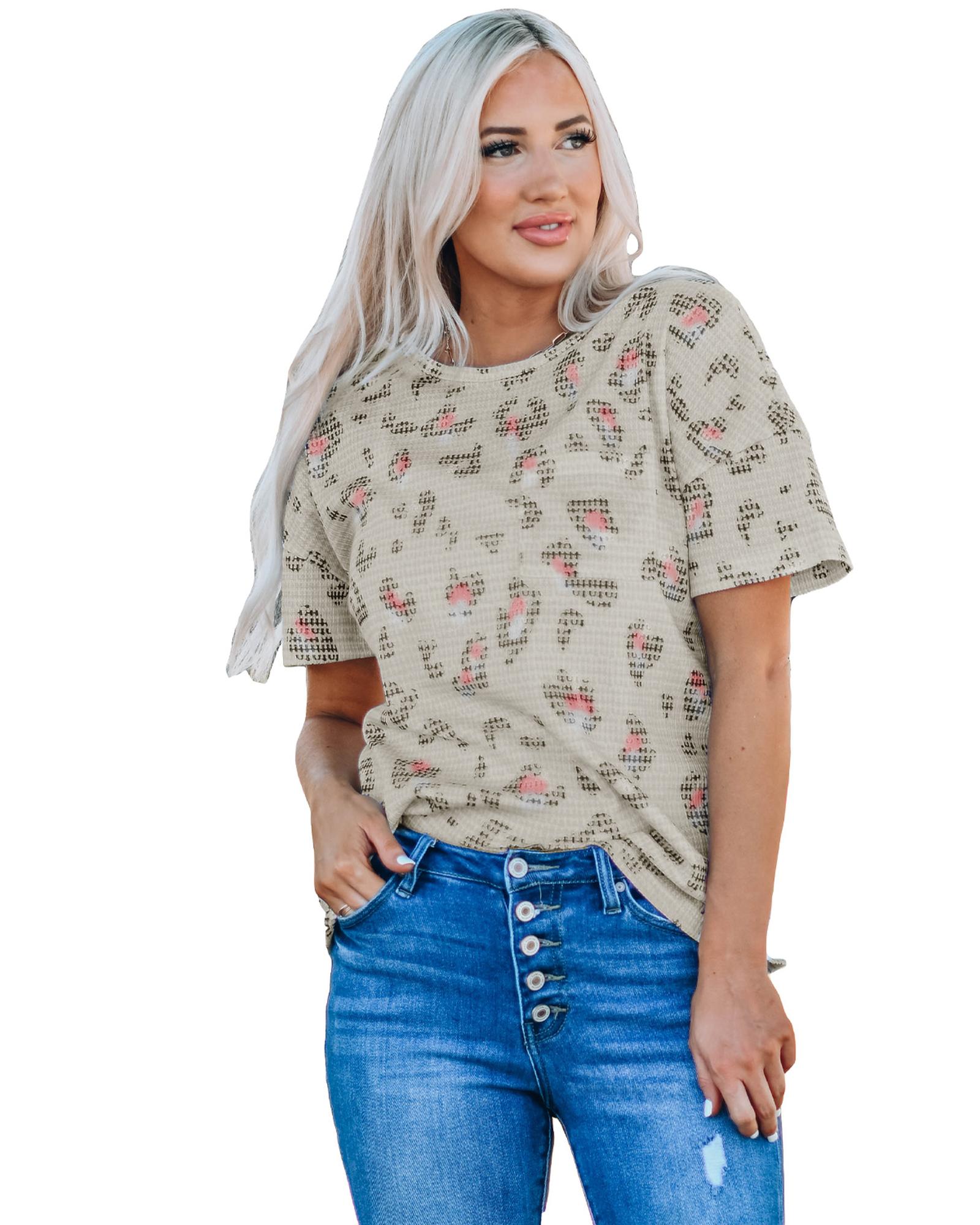 Azura Exchange Waffle Knit Short Sleeve Top - M