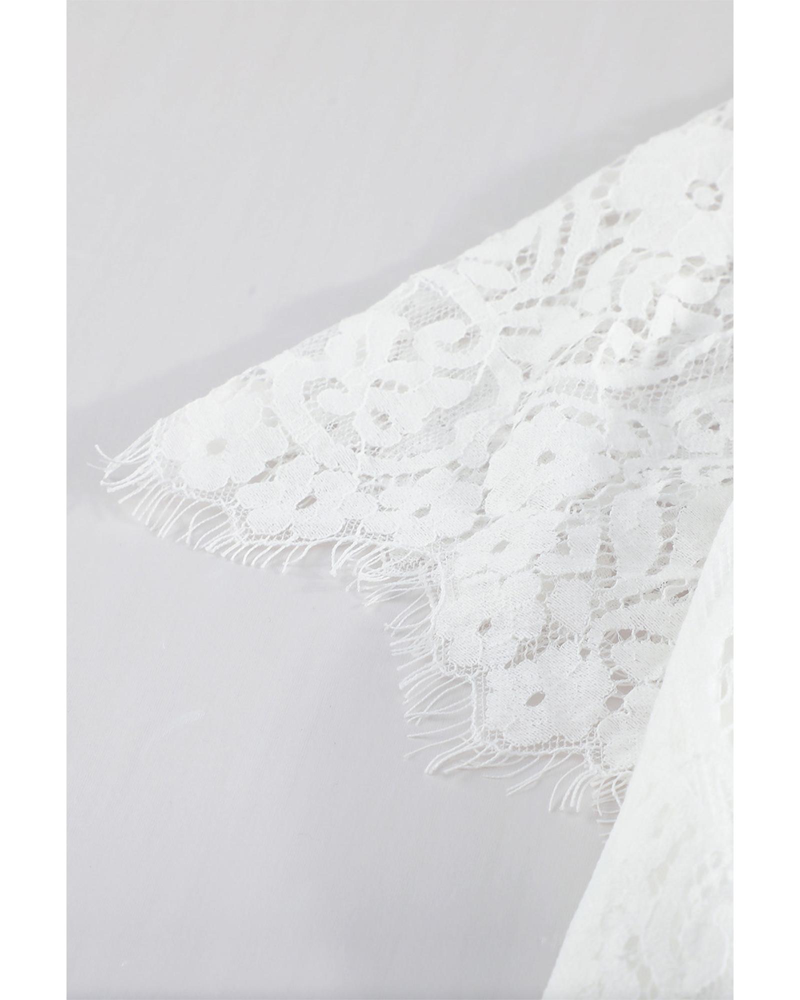 - Lace overlay and tulle underlay with soft eyelash lace trims