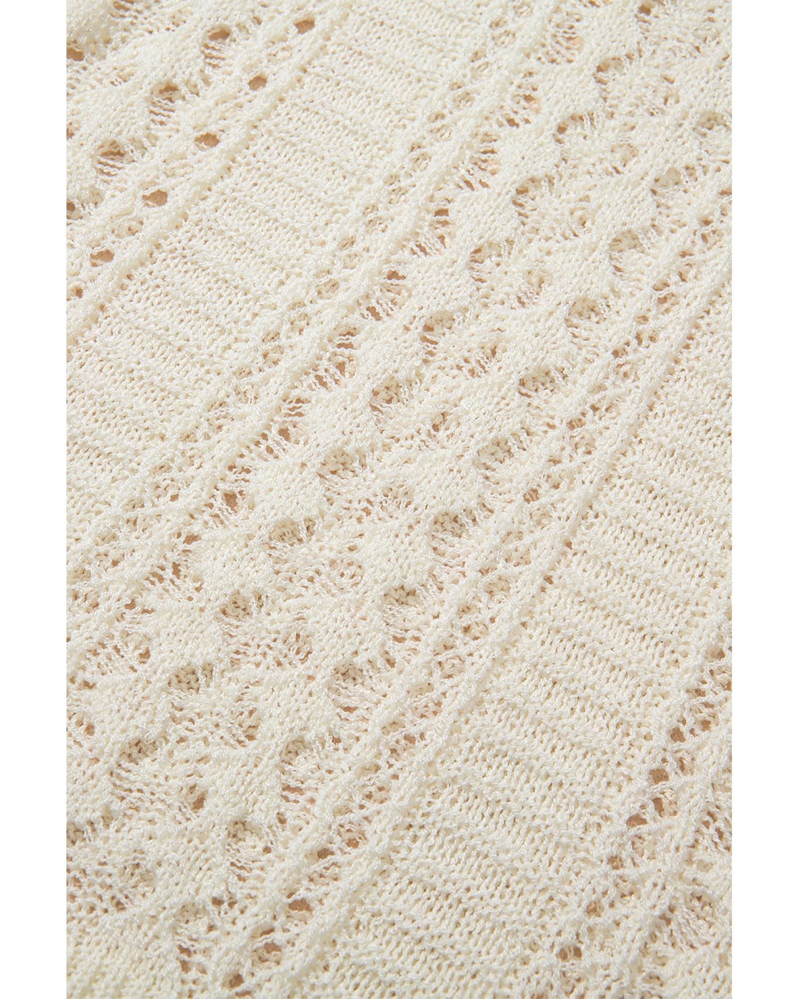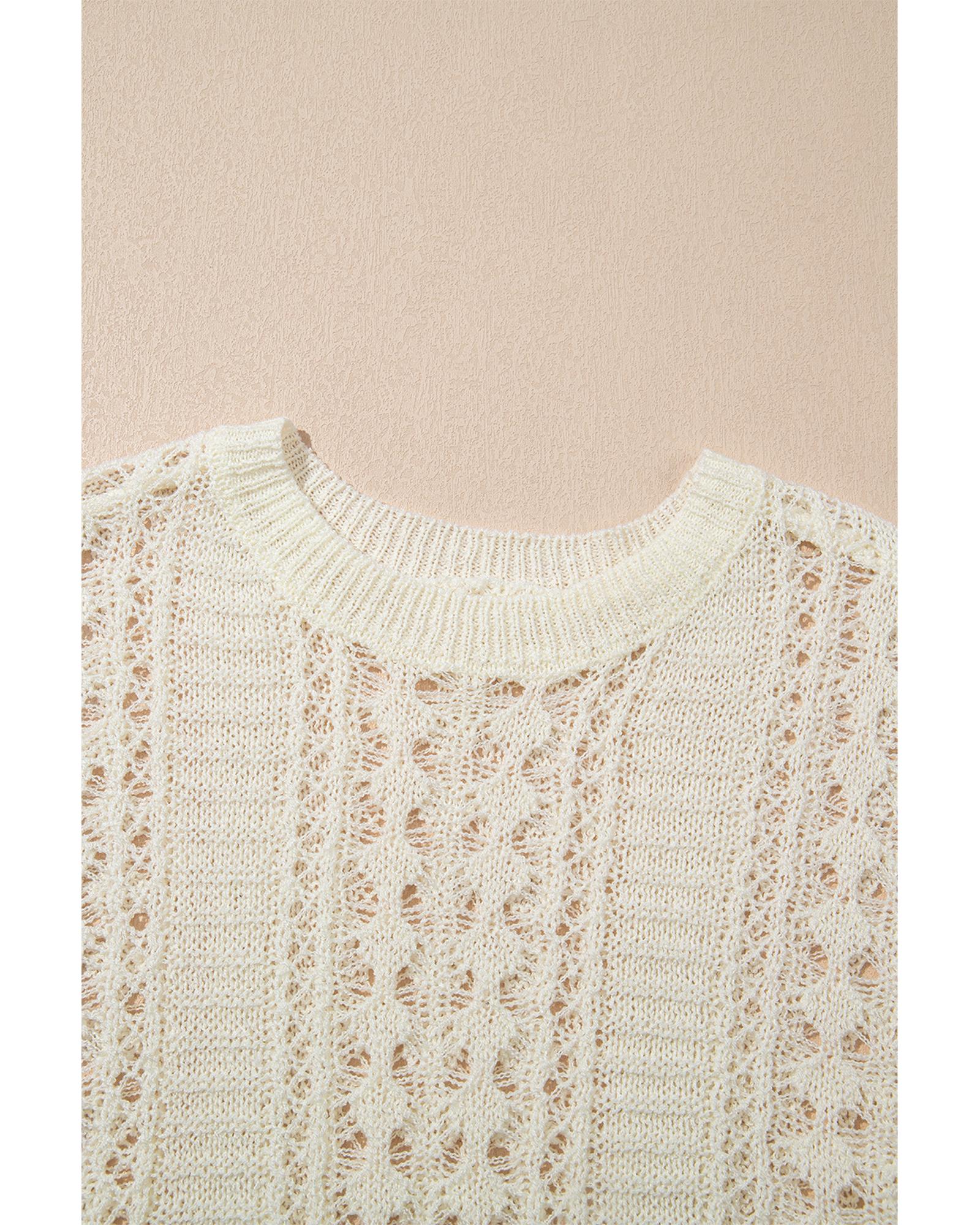 Azura Exchange White Hollow Out Knit Bracelet Sleeve Drop Shoulder Sweater – L