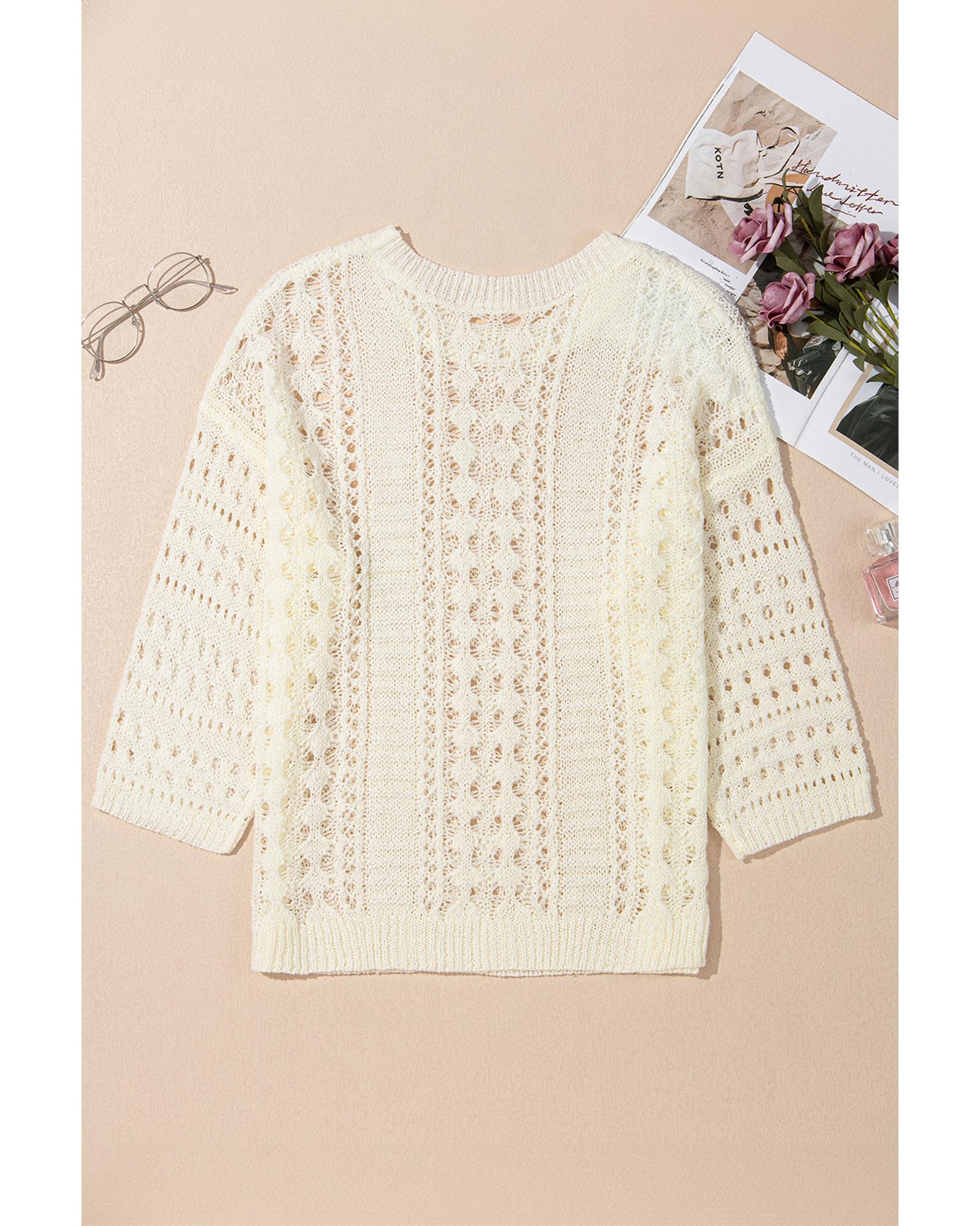 Azura Exchange White Hollow Out Knit Bracelet Sleeve Drop Shoulder Sweater – M