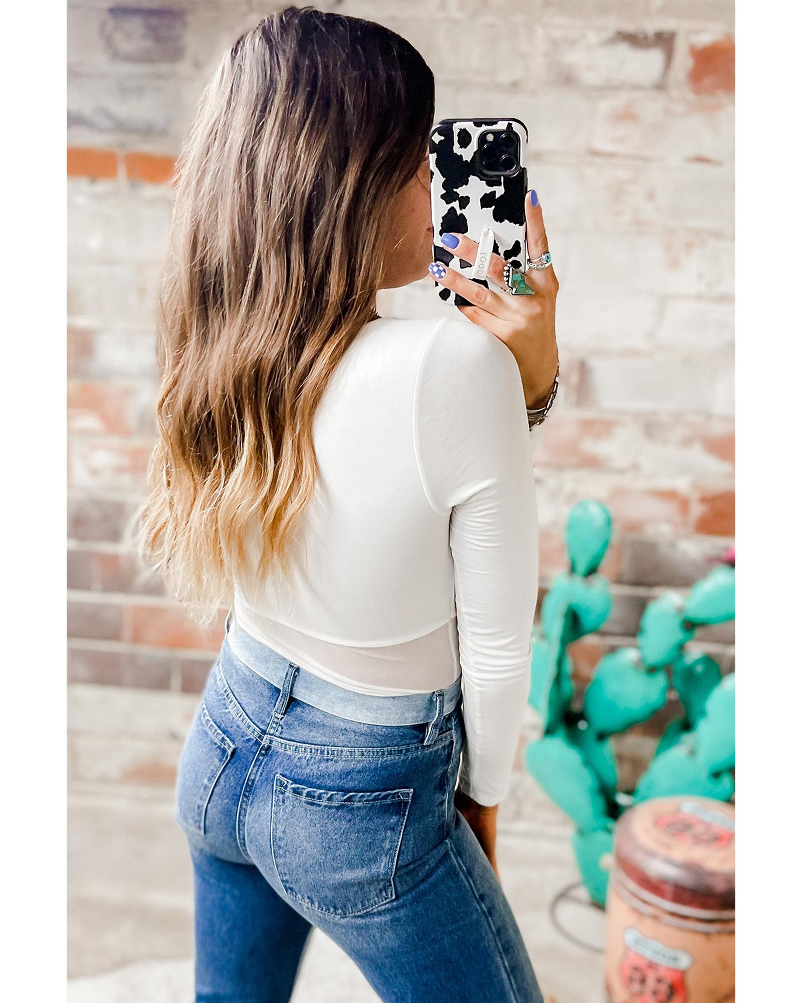Azura Exchange White Mesh Patchwork Long Sleeve Bodysuit – XL