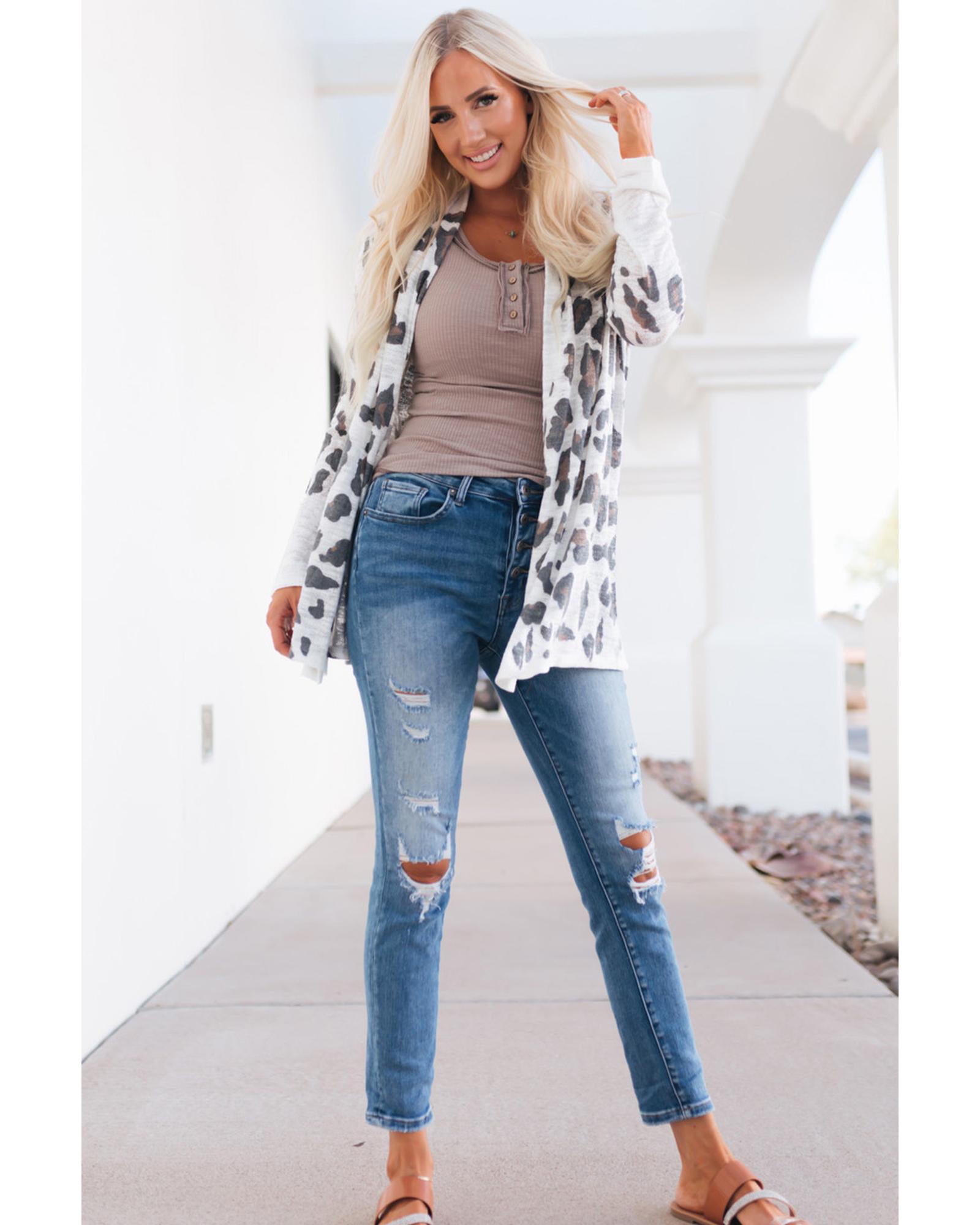 Azura Exchange White Vintage Leopard Print Open Cardigan – L