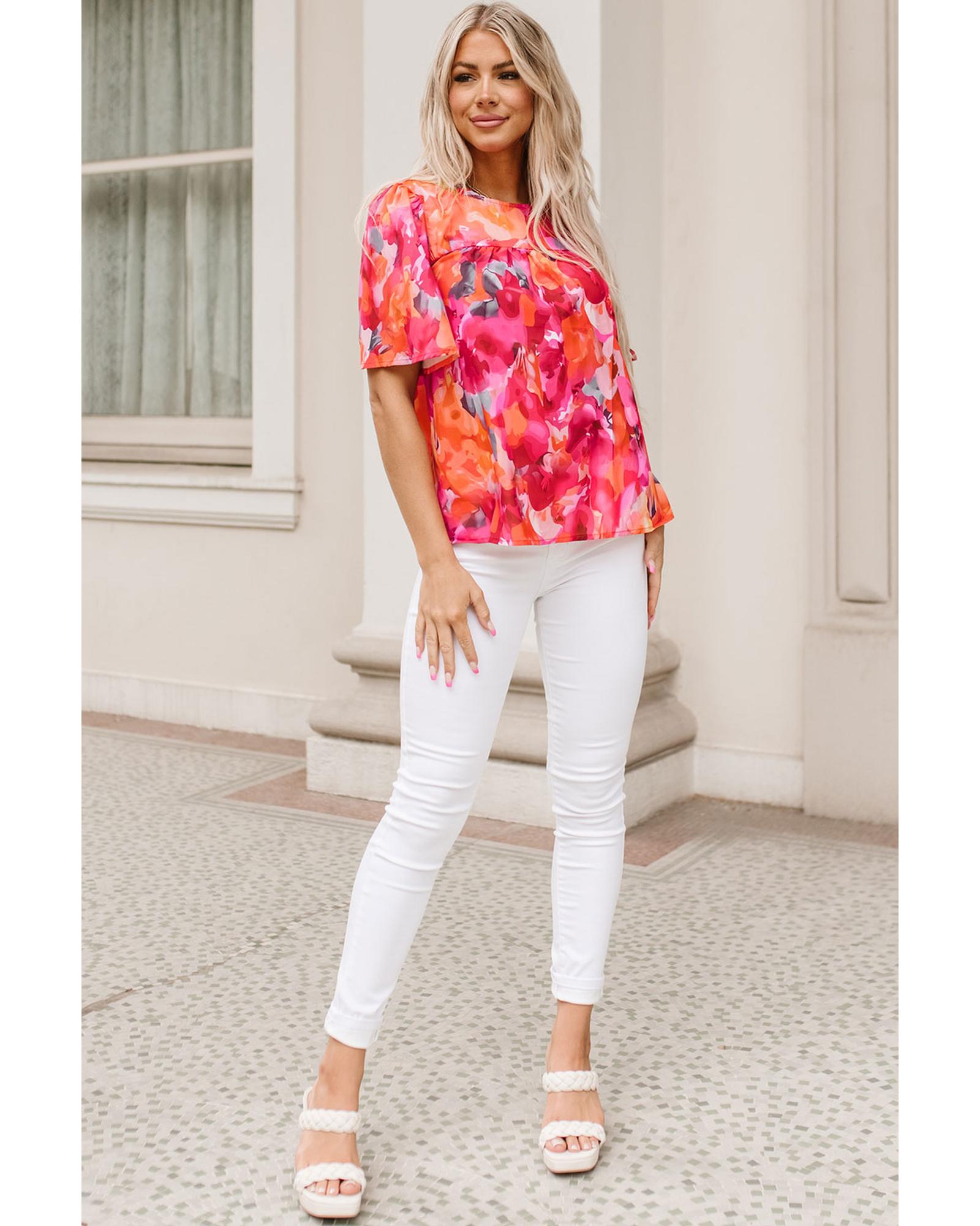 Azura Exchange Wide Sleeve Floral Print Blouse – M