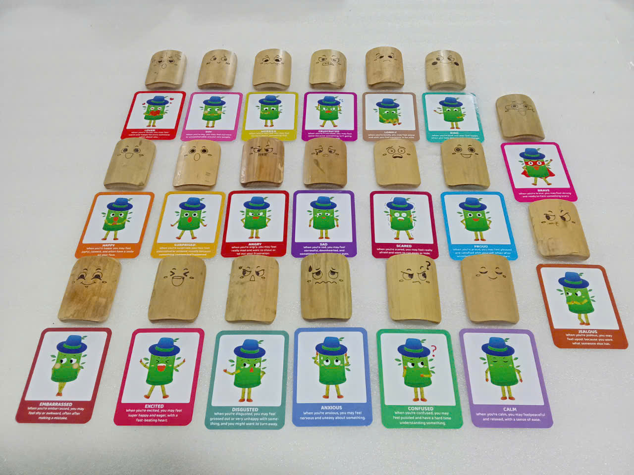 Introducing the Bamboo Facial Dominos Set of 20 by Qtoys – a fun and educational way to help children explore emotions. Crafted from sustainable bamboo, this unique set features 20 dominos, each printed with a different facial expression. Along with the dominos, it includes a set of cards that explain each emotion, providing a simple and effective way for children to understand and express their feelings. This set is not only a fantastic tool for teaching emotional intelligence but also promotes early childhood development through interactive play.