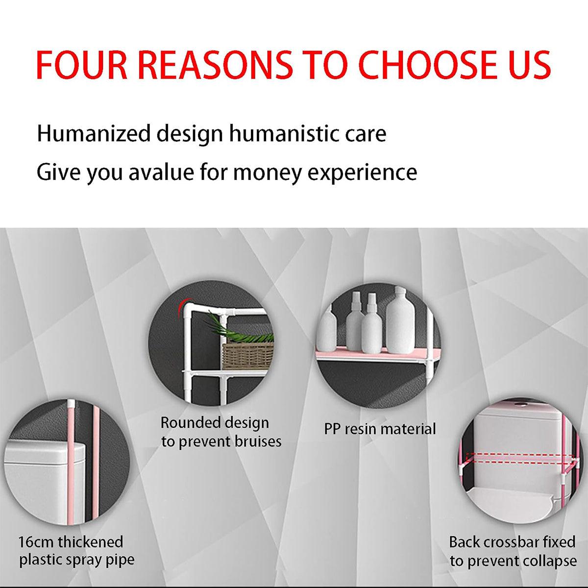 Maximise your bathroom’s storage with this practical over-toilet rack, designed to make the most of vertical space. Standing 59.1 inches tall, it features sturdy PP resin shelves and a robust metal frame to securely hold towels, toiletries, and other bathroom essentials. Available in sleek black and white, this storage rack blends seamlessly with both modern and classic bathroom decors, offering both style and functionality.