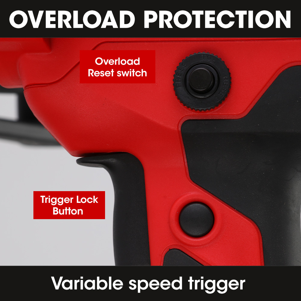 This powerful, lightweight machine makes it convenient to carry and use in any position ensuring precision in every task. The included polycarbonate shoulder stock and non-slip handle ensure a secure grip, allowing for precise control and reducing fatigue during extended usage.