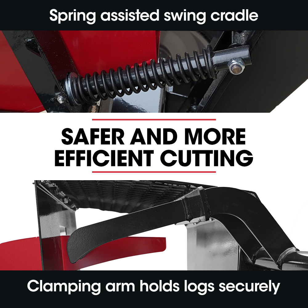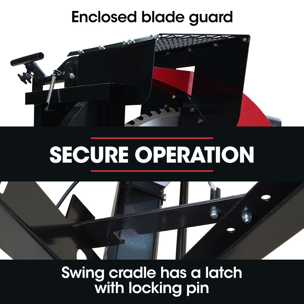 Safety is our top priority, and the LCS-700 is designed with an enclosed blade guard and lockable cradle, ensuring secure and protected operation at all times. And if that’s not enough, the log clamping device firmly secures the wood in place, making your cutting experience safer and more efficient than ever before.