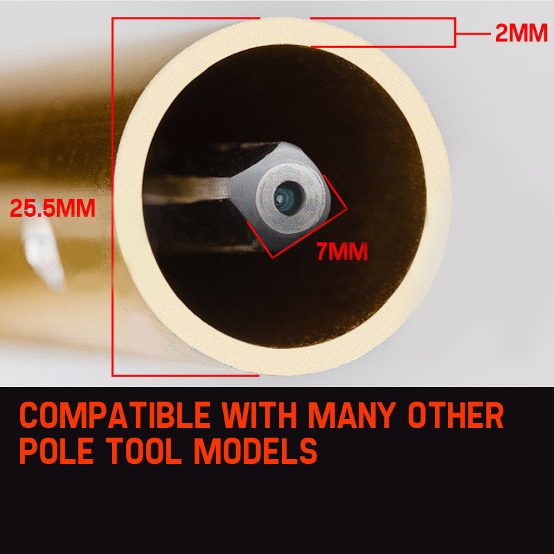 Fits square-splined Baumr-AG and gold MTM Pole Tools, as well as other brands that use 26mm diameter attachments.