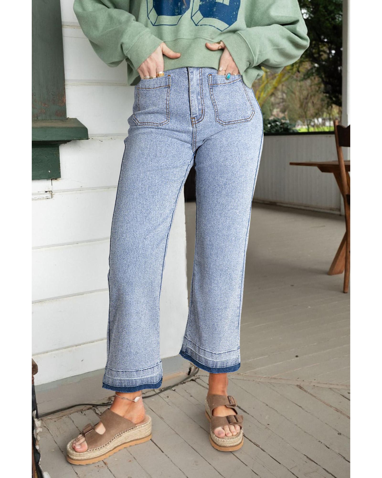 Beau Blue Acid Wash Contrast Edge Pocketed Cropped Jeans – 16 US