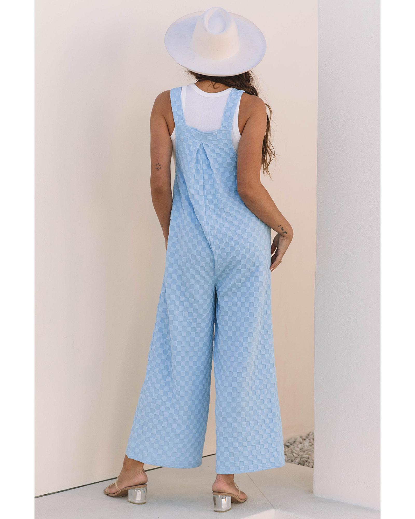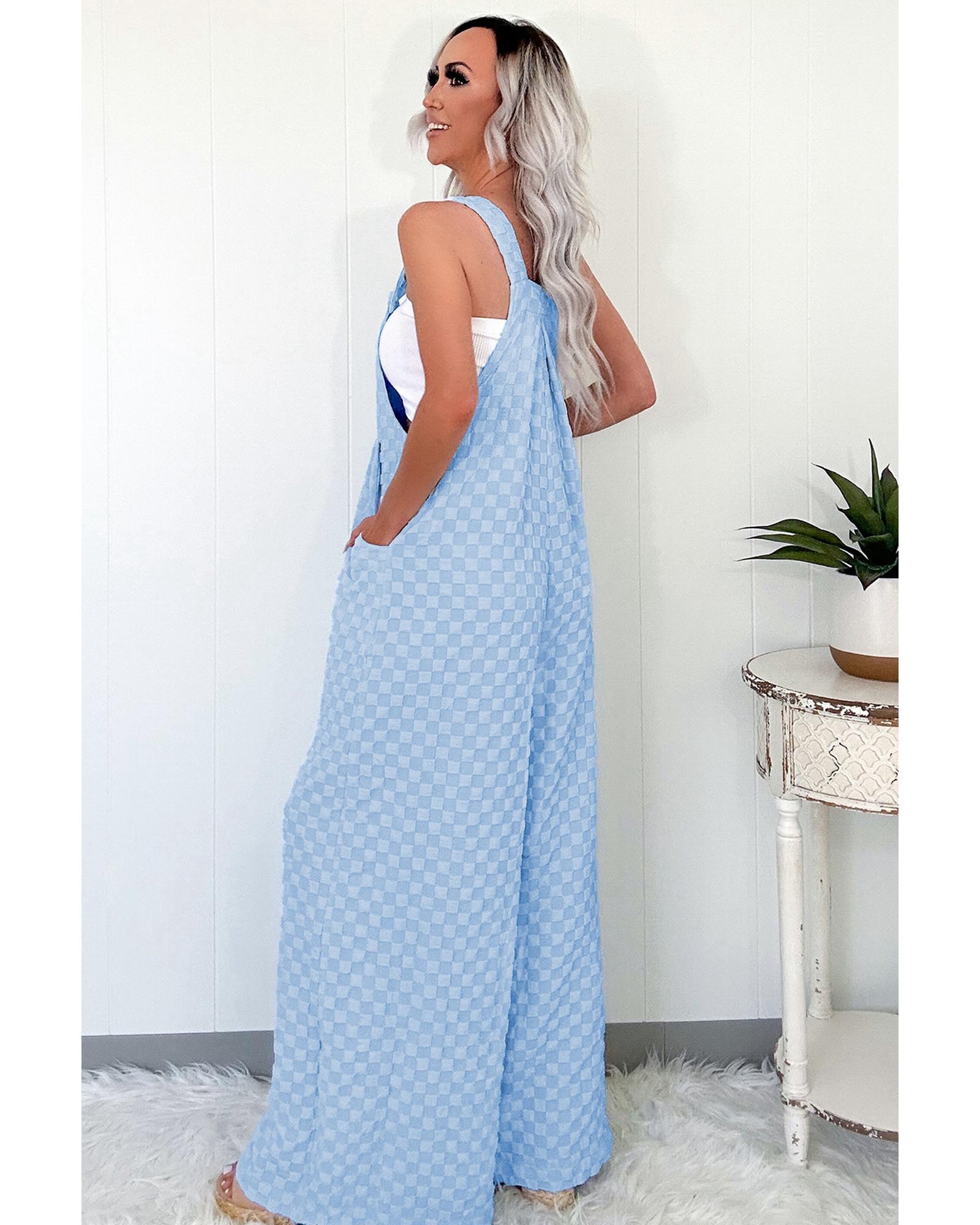 Beau Blue Checkered Pocketed High Waist Wide Leg Overall – XL