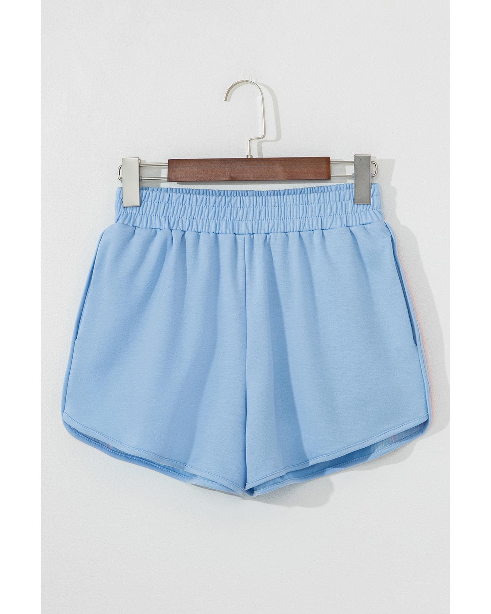 Beau Blue Color Block Stripes Elastic High Waist Active Shorts – M