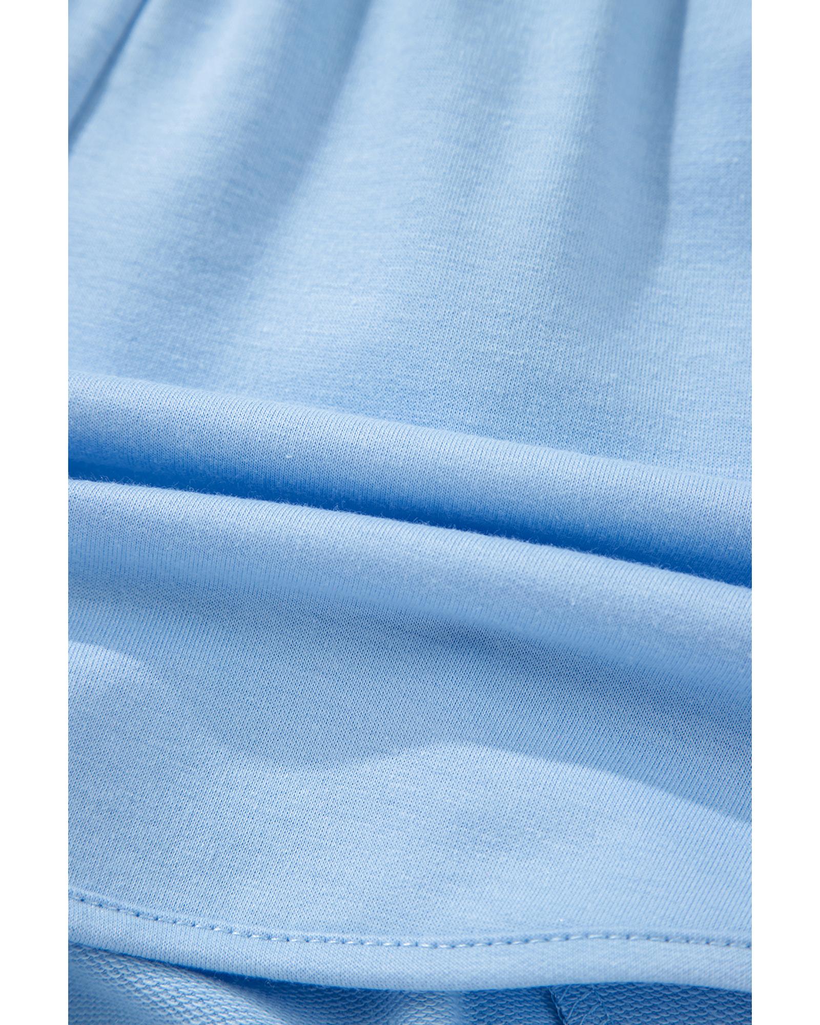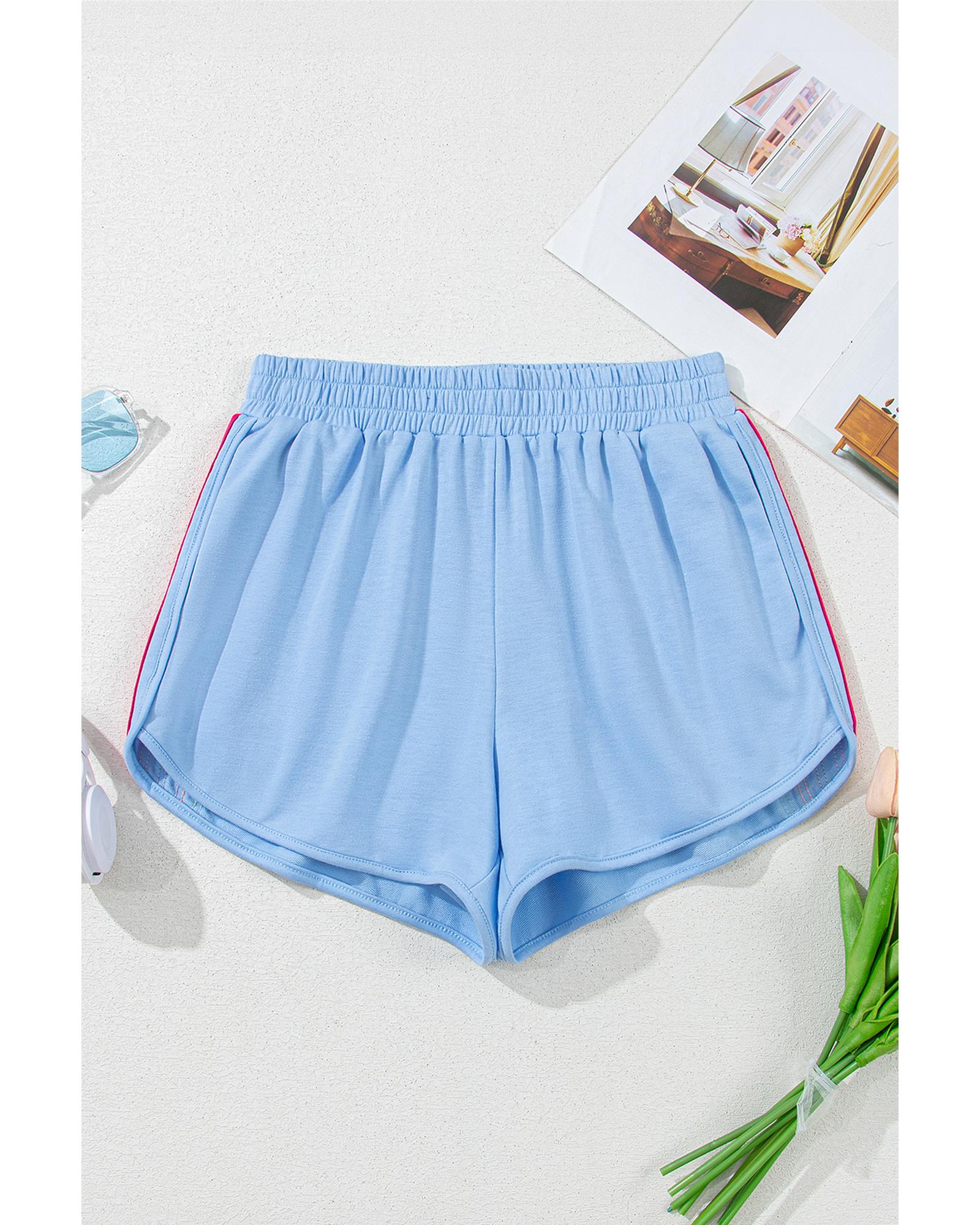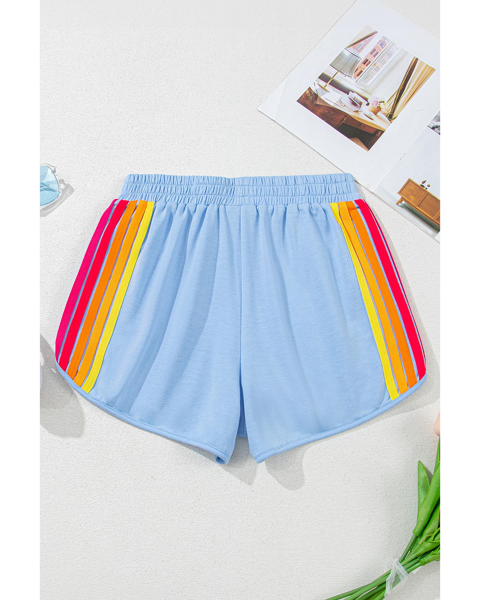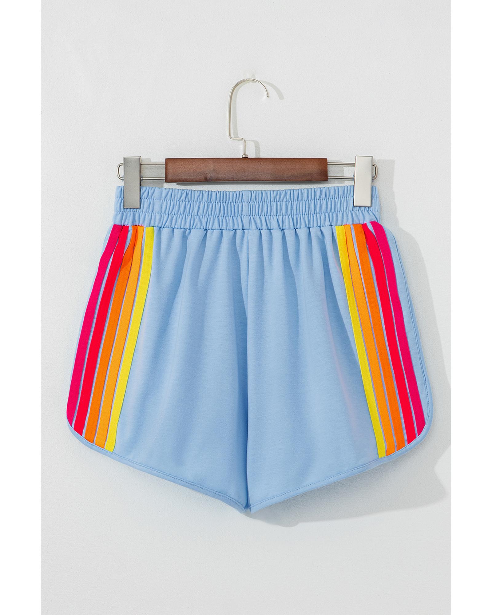Beau Blue Color Block Stripes Elastic High Waist Active Shorts – XL