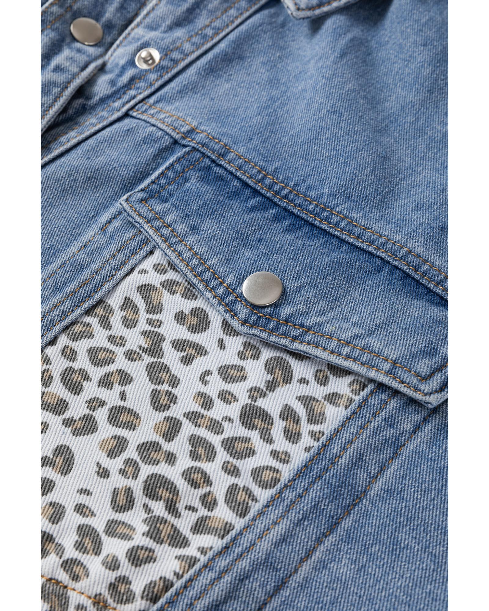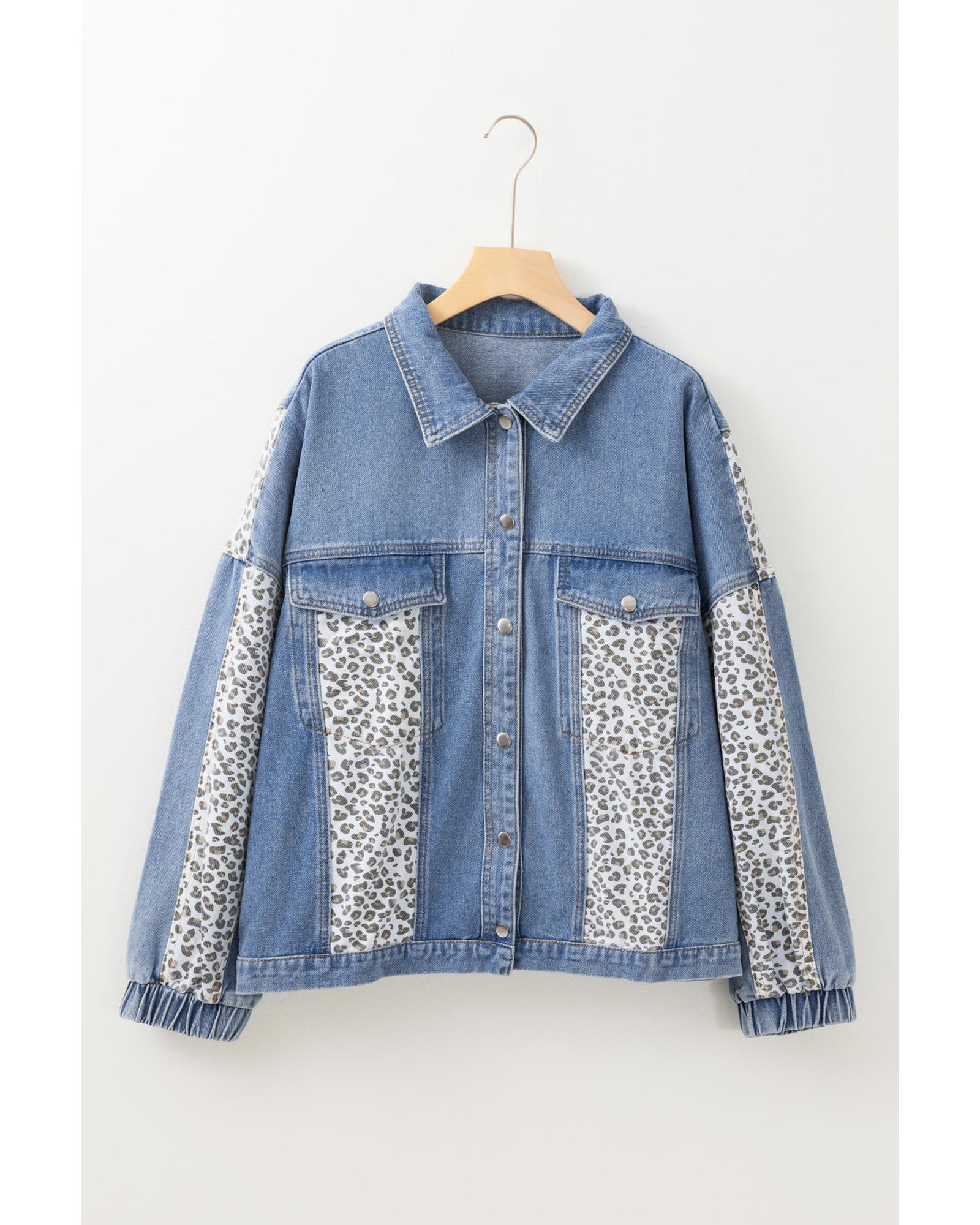 Beau Blue Leopard Patchwork Flap Detail Plus Size Denim Jacket – 2X