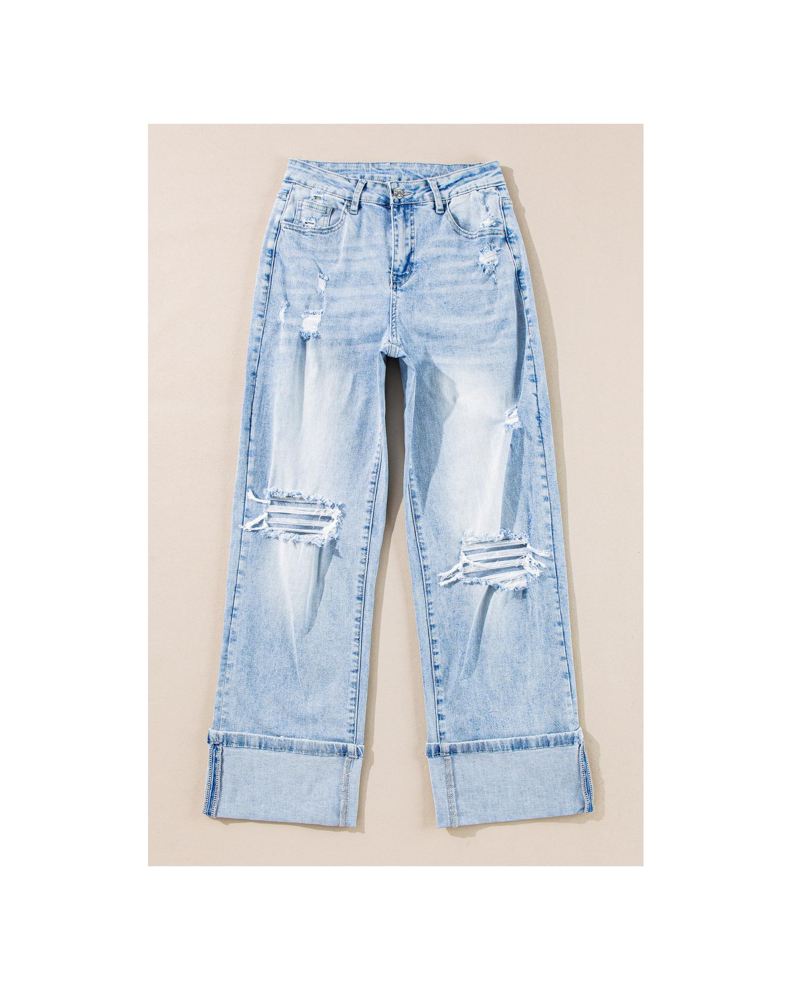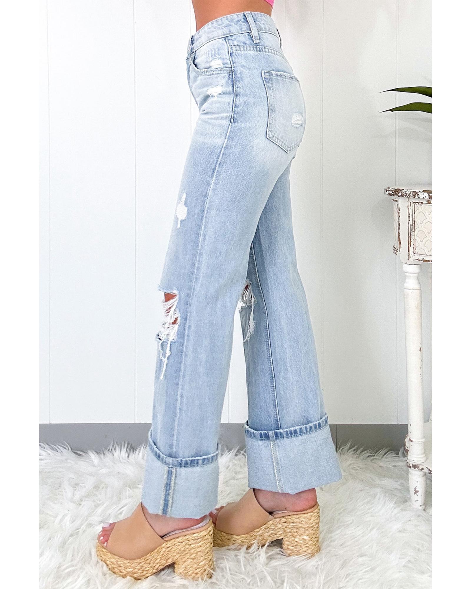 Beau Blue Light Wash Distressed Flare Jeans – 16 US