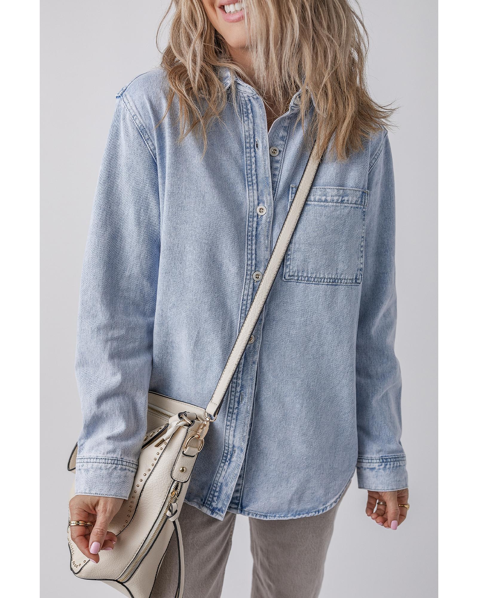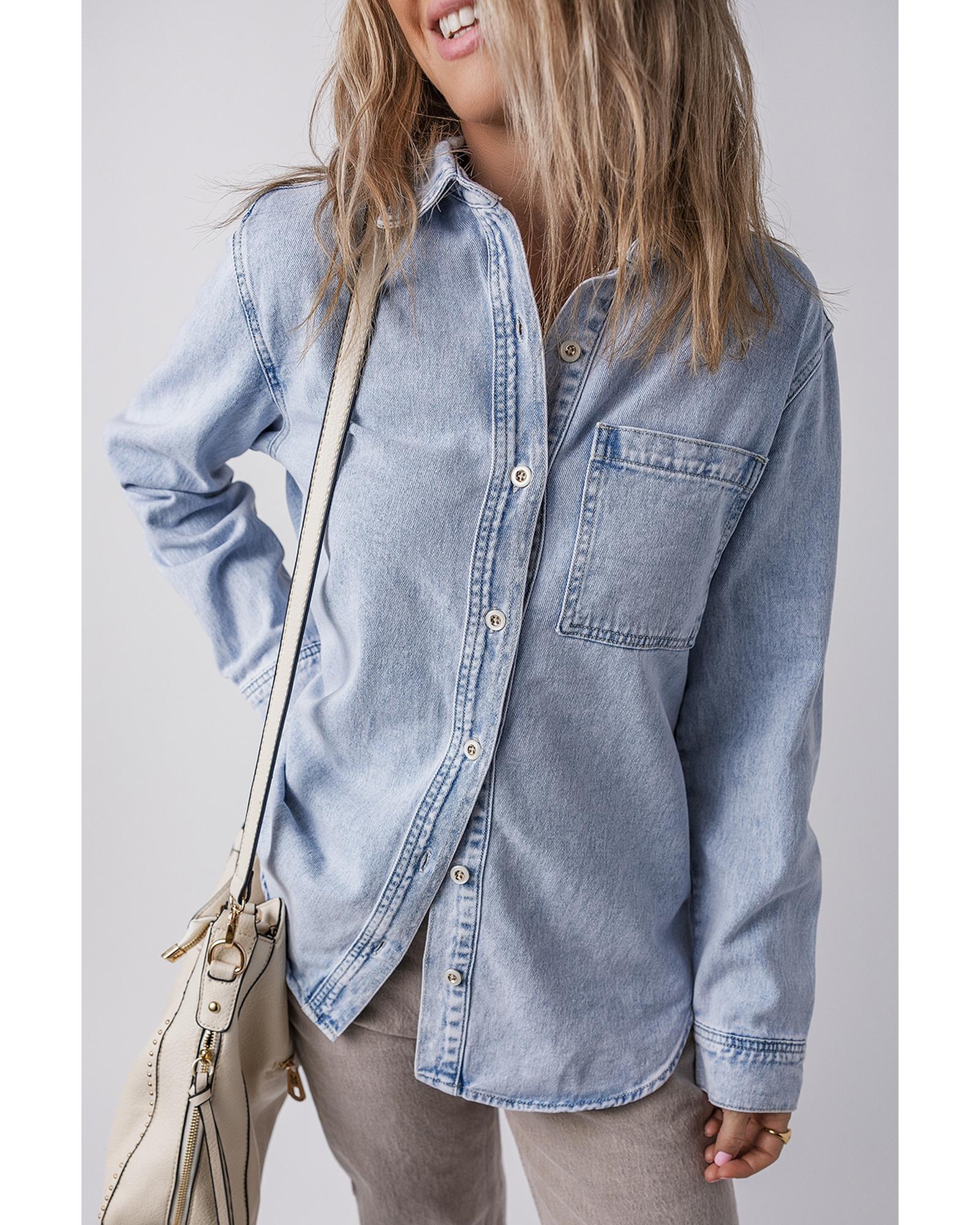 Beau Blue Long Sleeve Buttoned Chest Pocket Denim Shacket – L