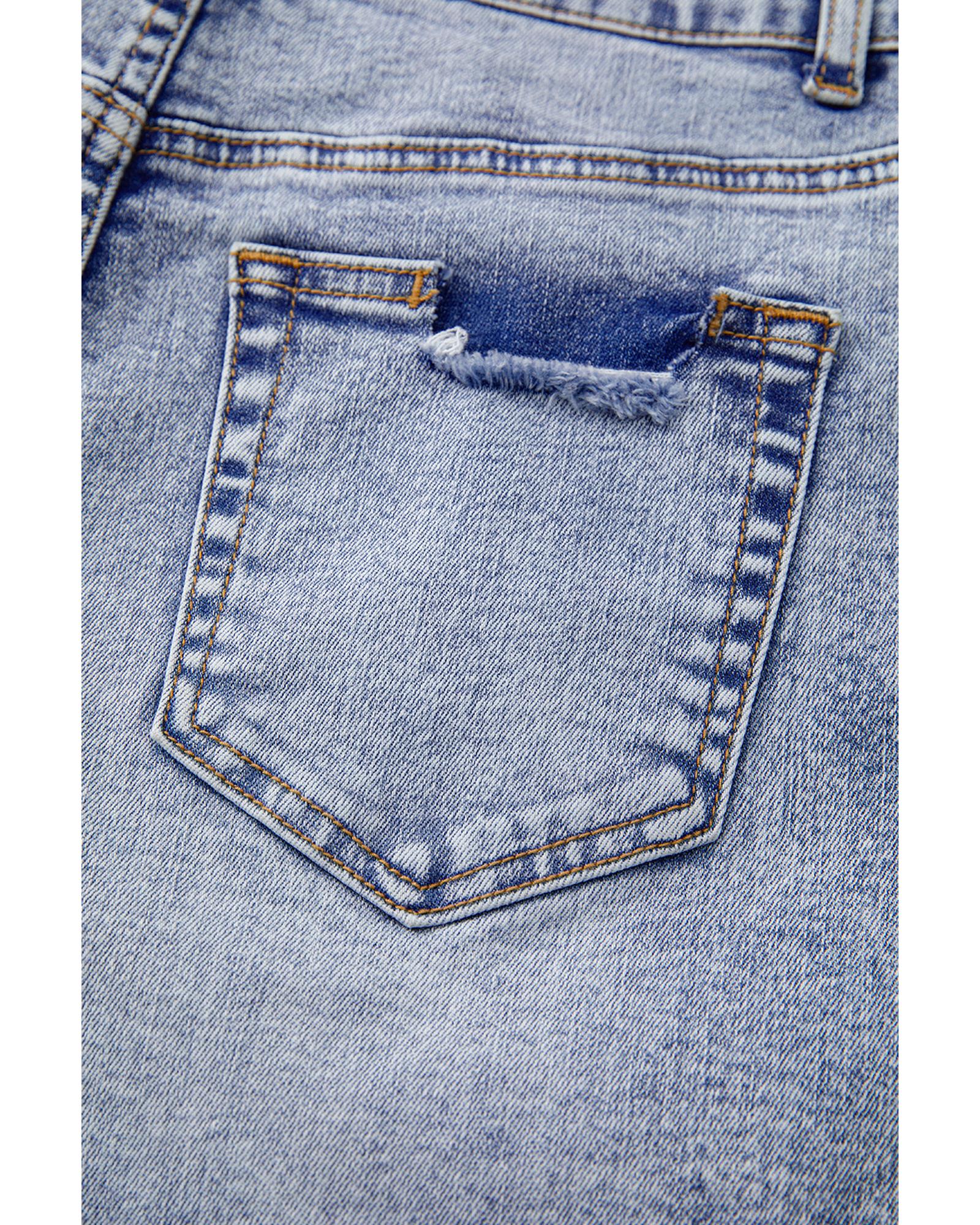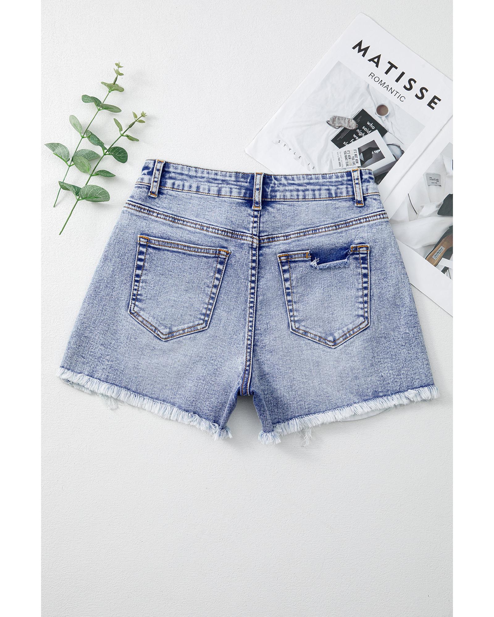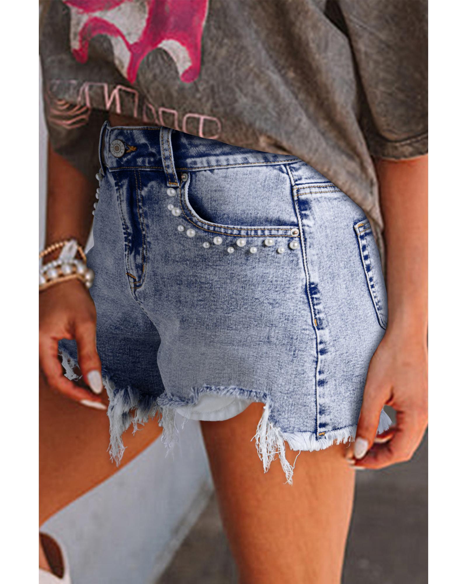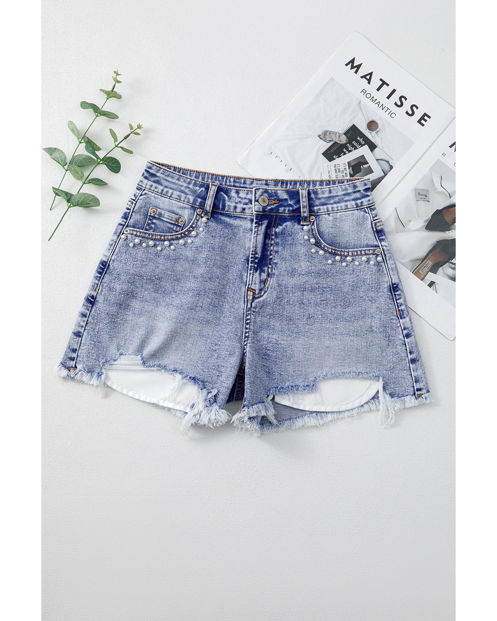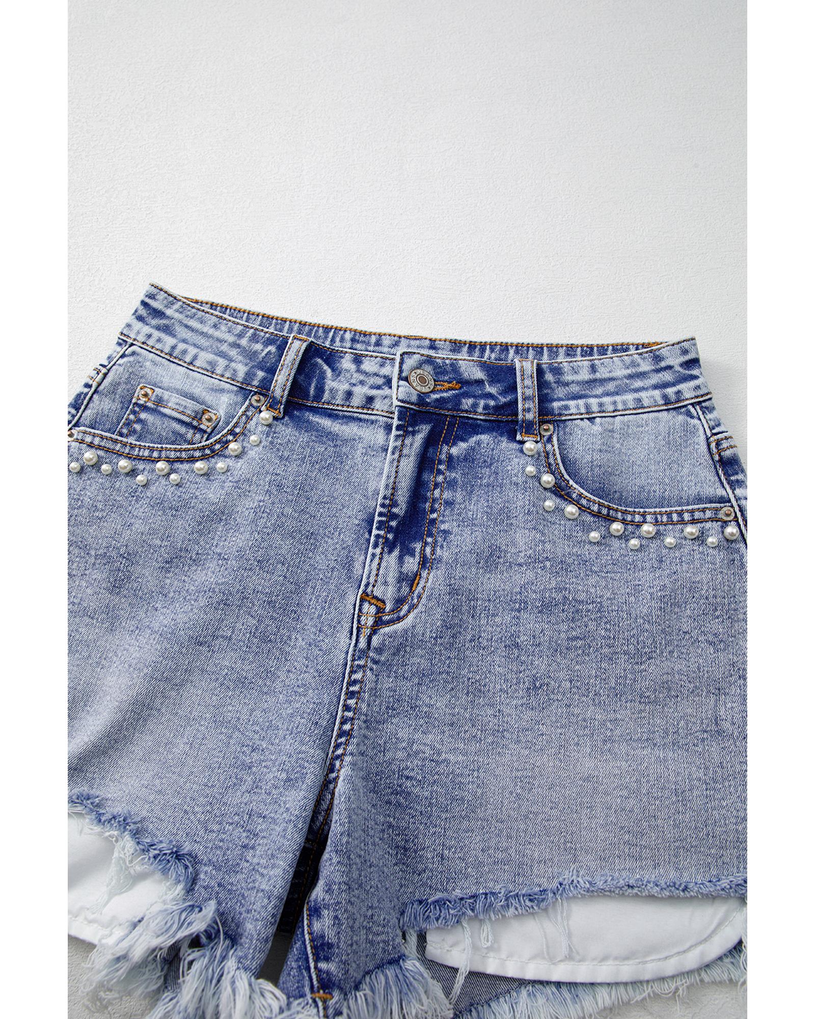 Beau Blue Pearl Studded Pockets Raw Hem Denim Shorts – 12 US