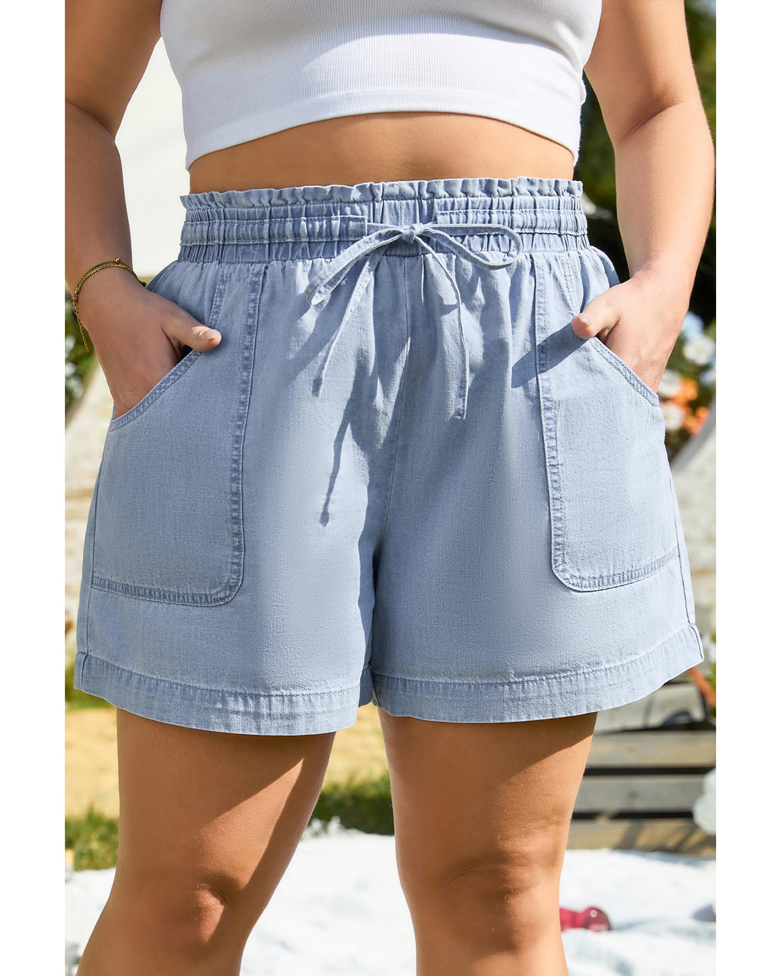 Beau Blue Pocketed Drawstring High Waist Plus Size Denim Shorts – 4X