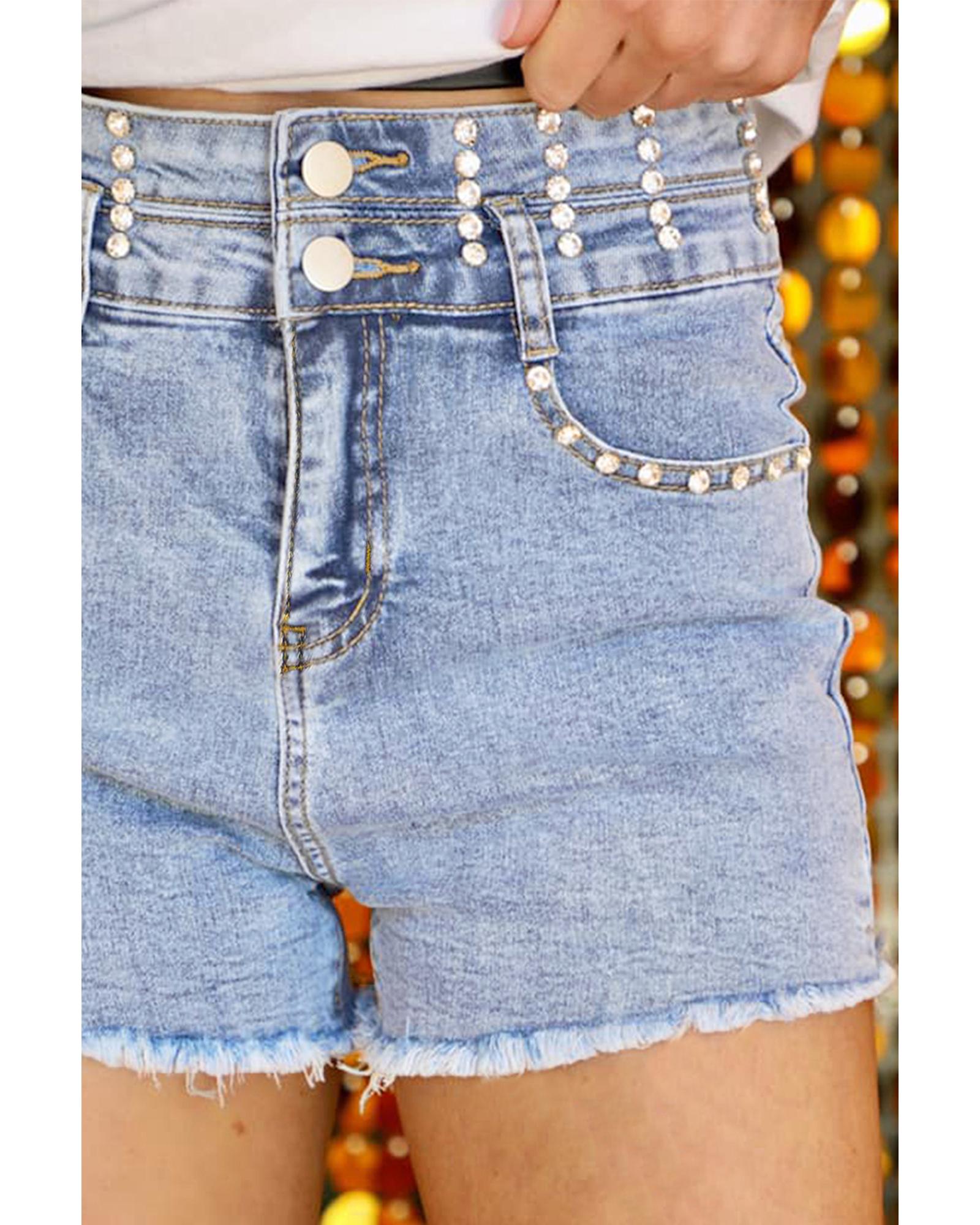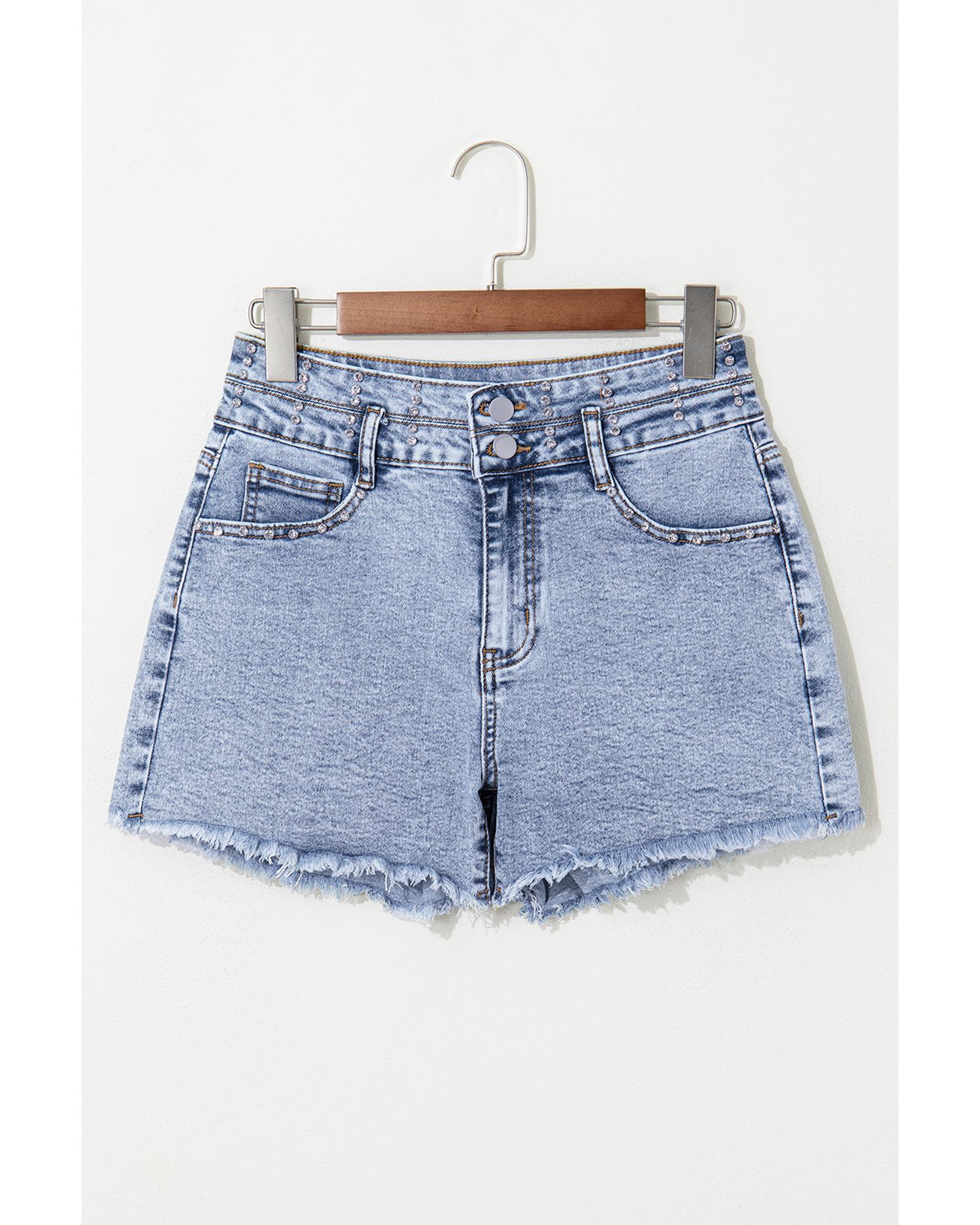 Beau Blue Rhinestone Light Wash Raw Hem High Waist Denim Shorts – 14 US