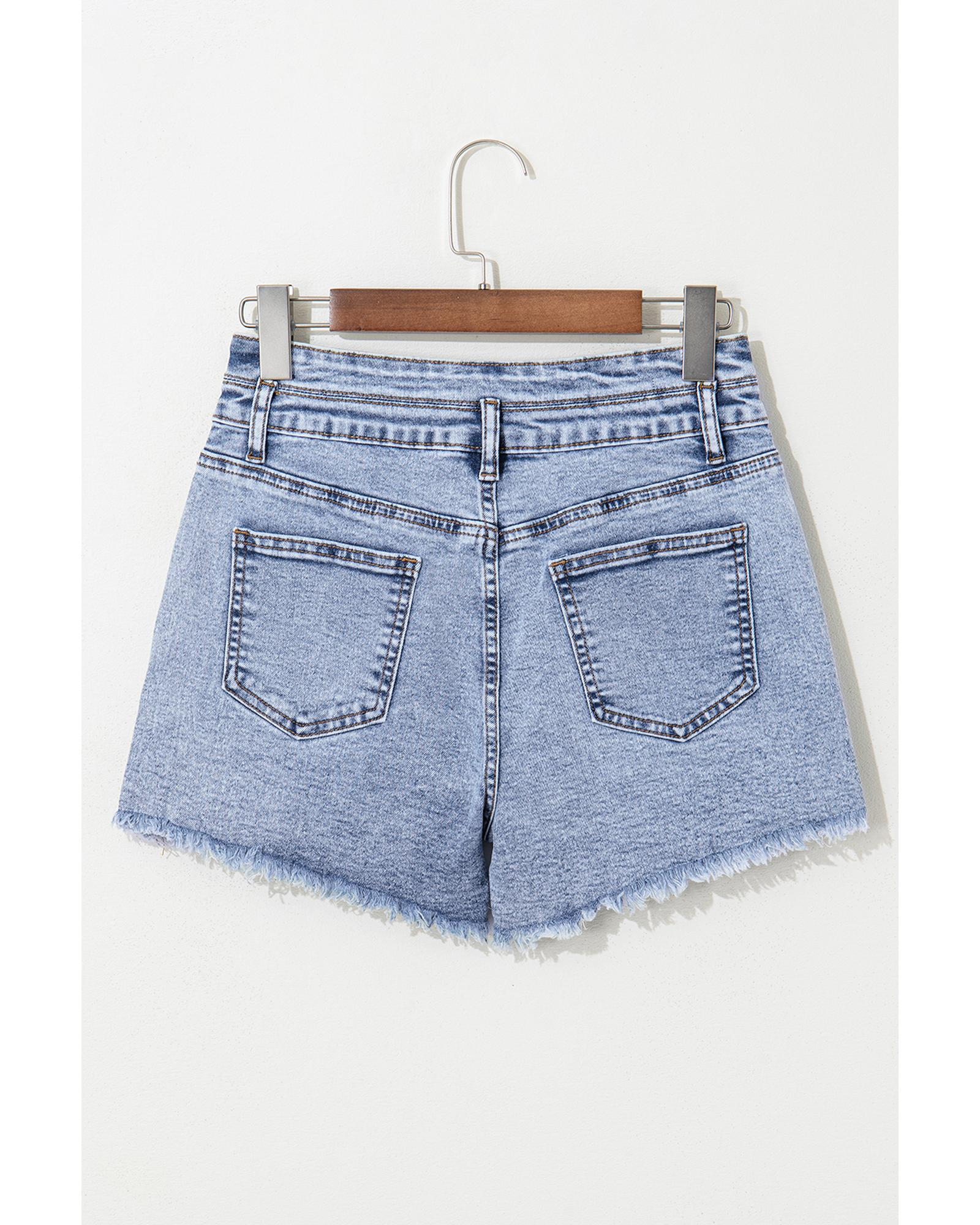 Beau Blue Rhinestone Light Wash Raw Hem High Waist Denim Shorts – 4 US