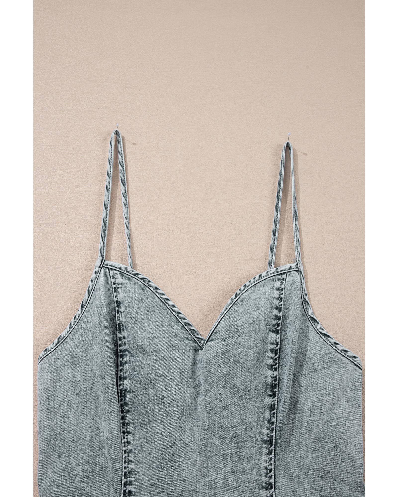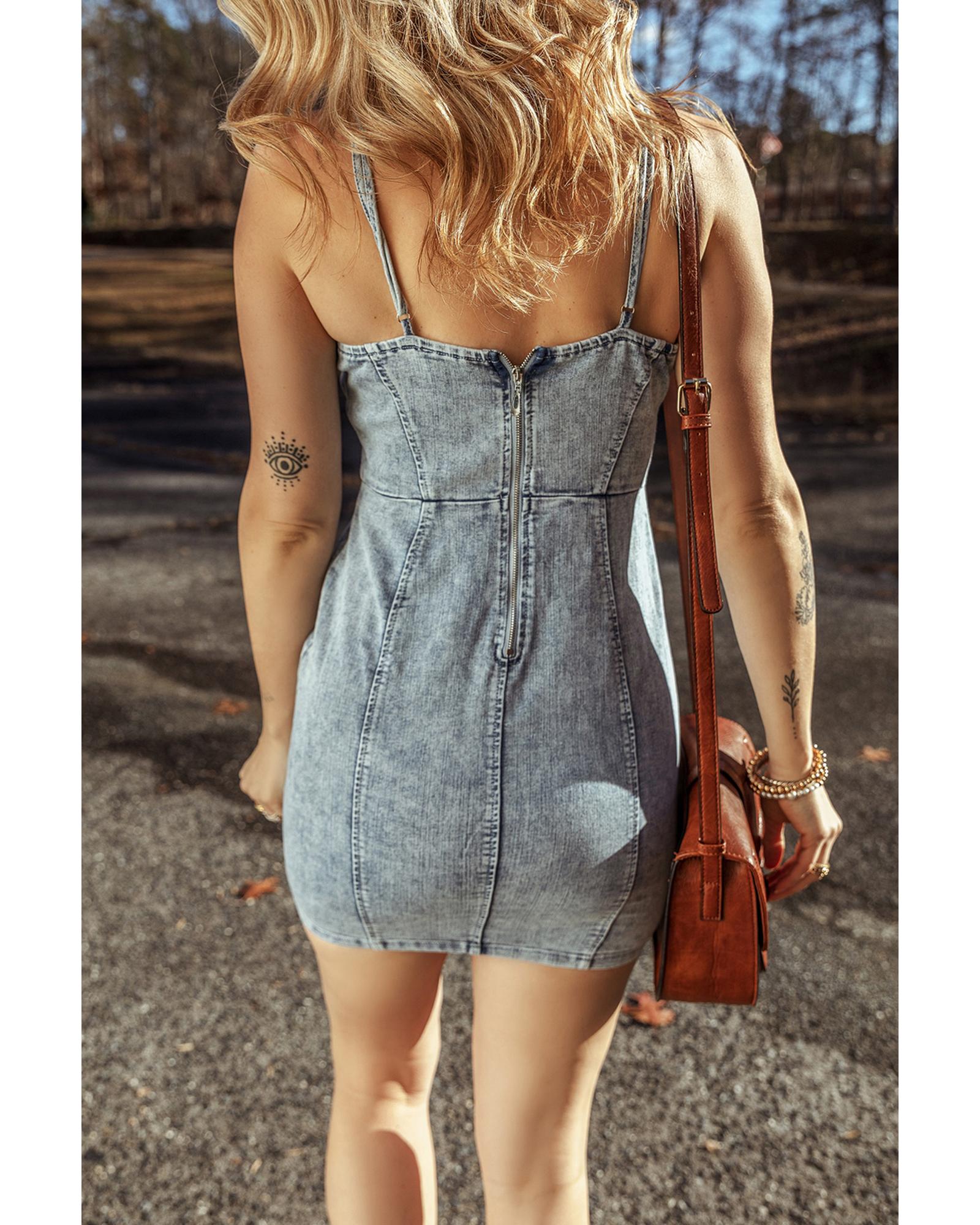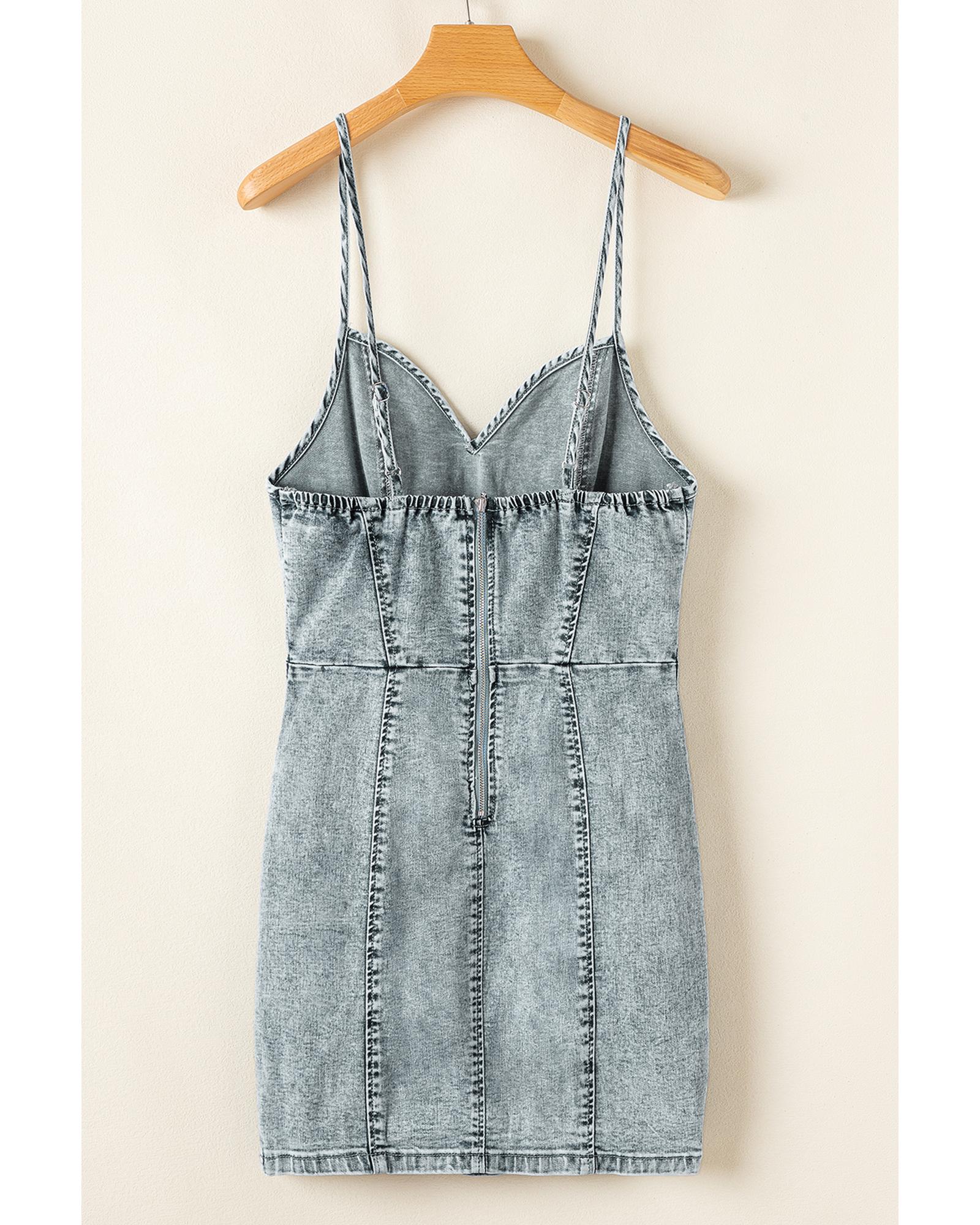 Beau Blue Sleeveless V Neck Back Zipped Denim Dress – L