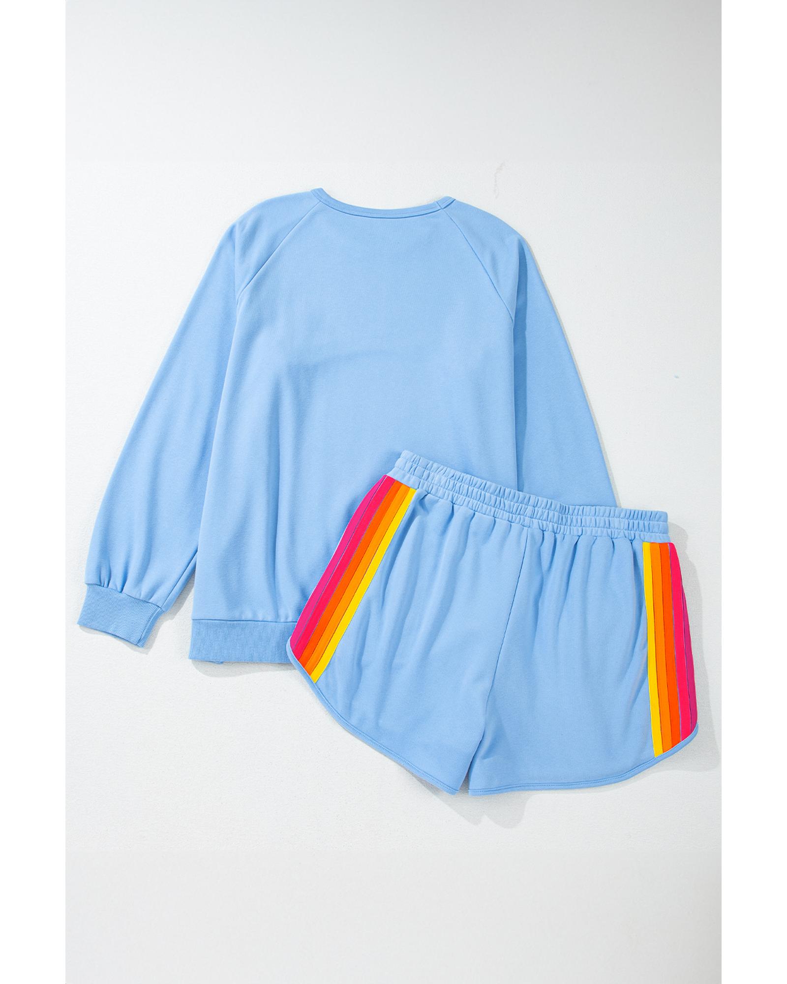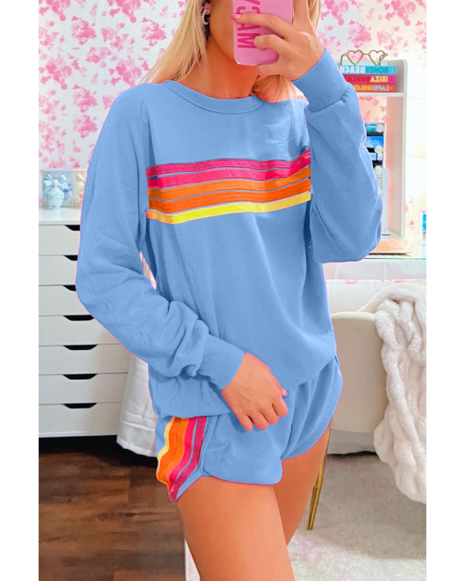 Beau Blue Striped Accent Pullover and Shorts Two Piece Casual Set – 2XL
