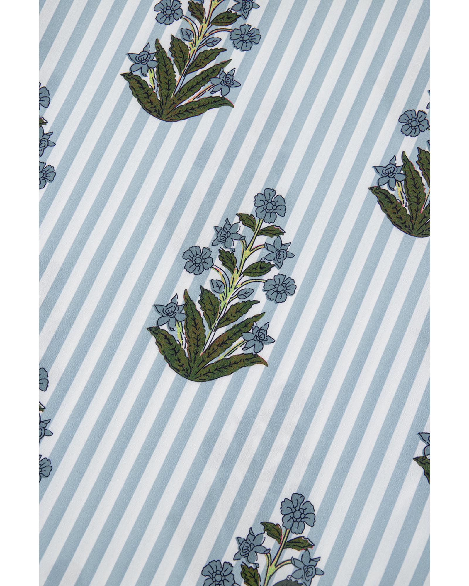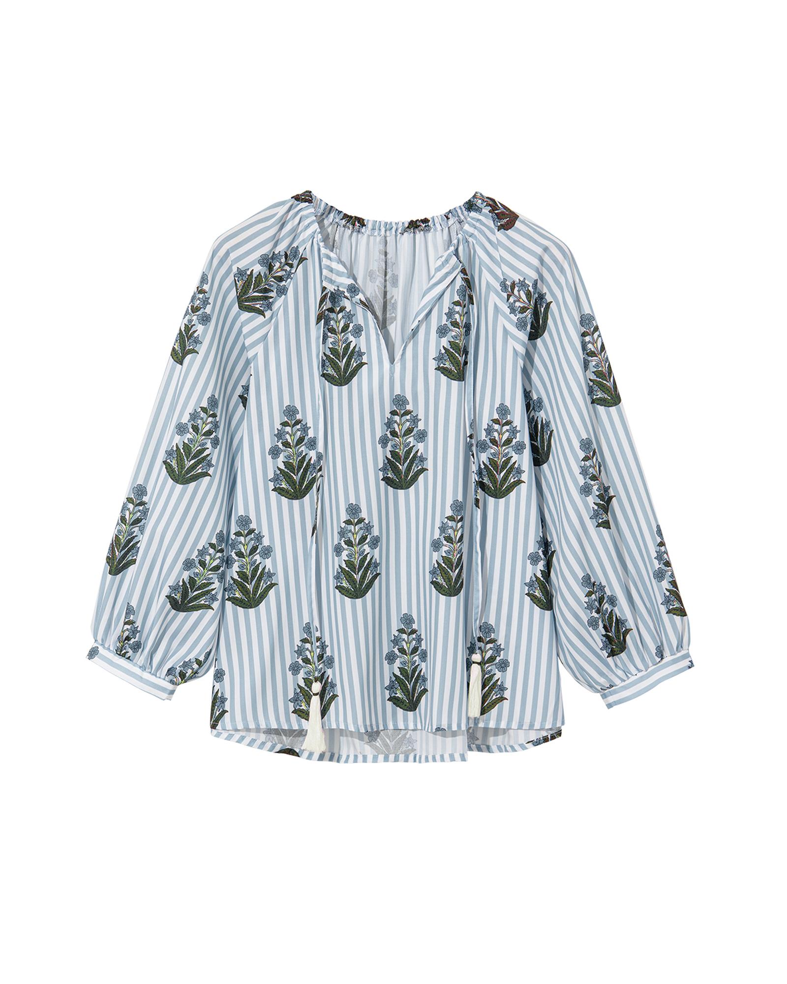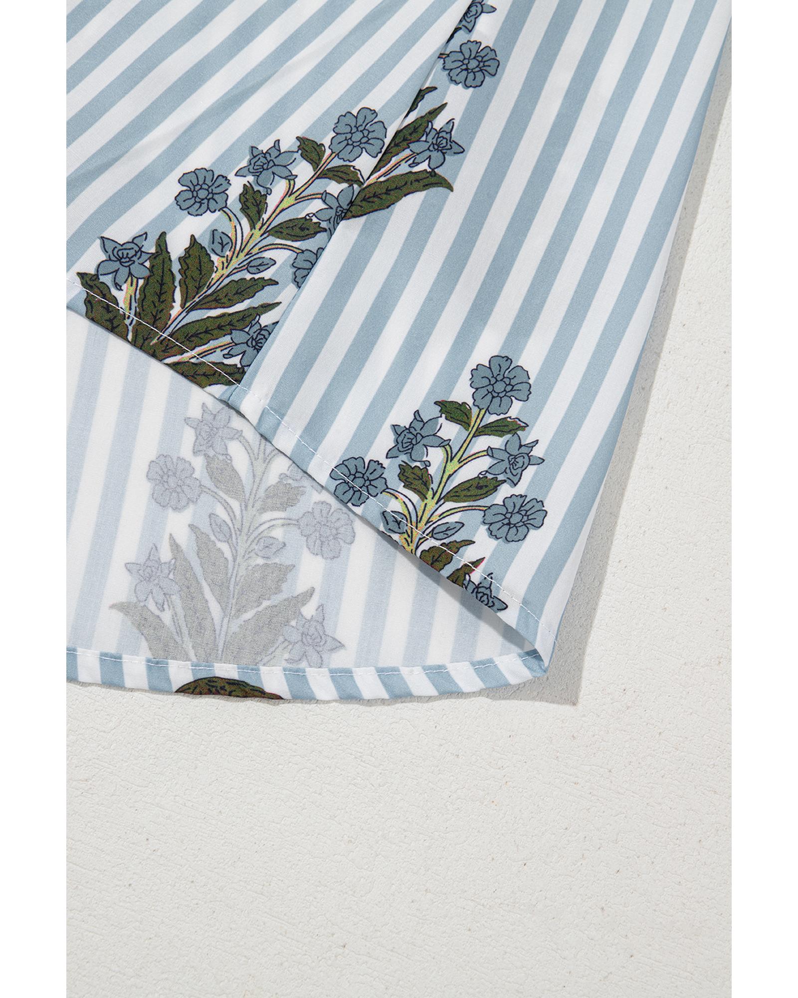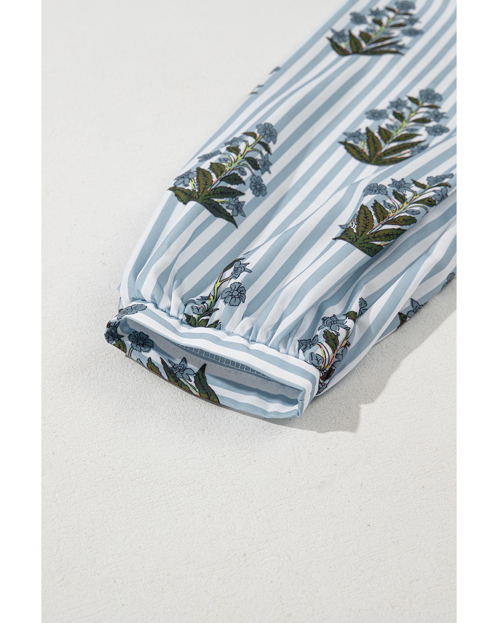 Beau Blue Striped Floral Printed Long Sleeve Tied V Neck Blouse – XL
