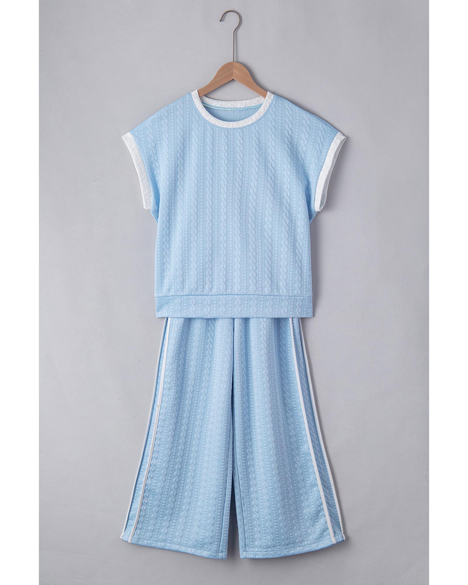 Beau Blue Textured Colorblock Edge Tank Top High Waist Pants Set – S