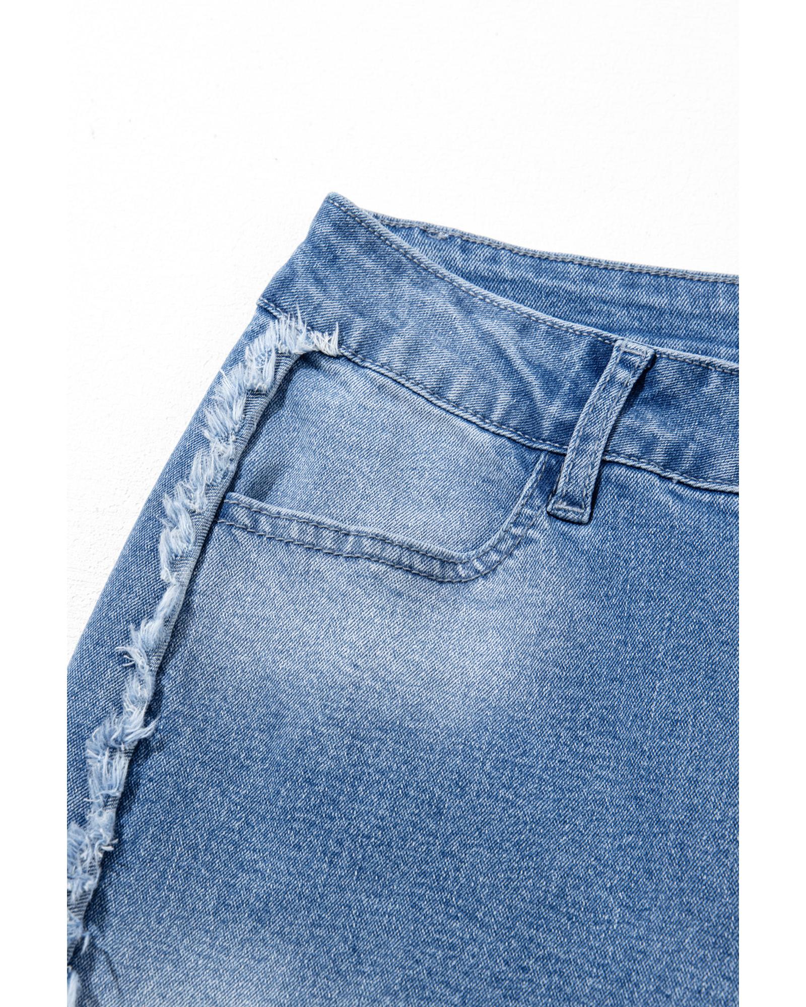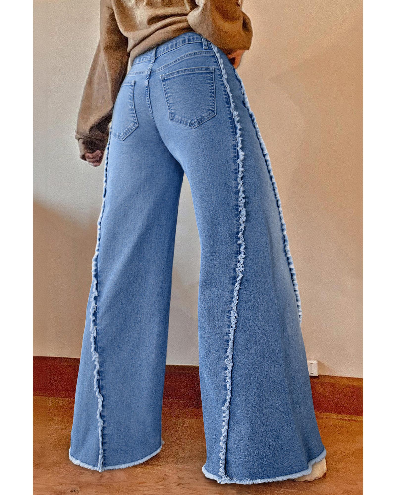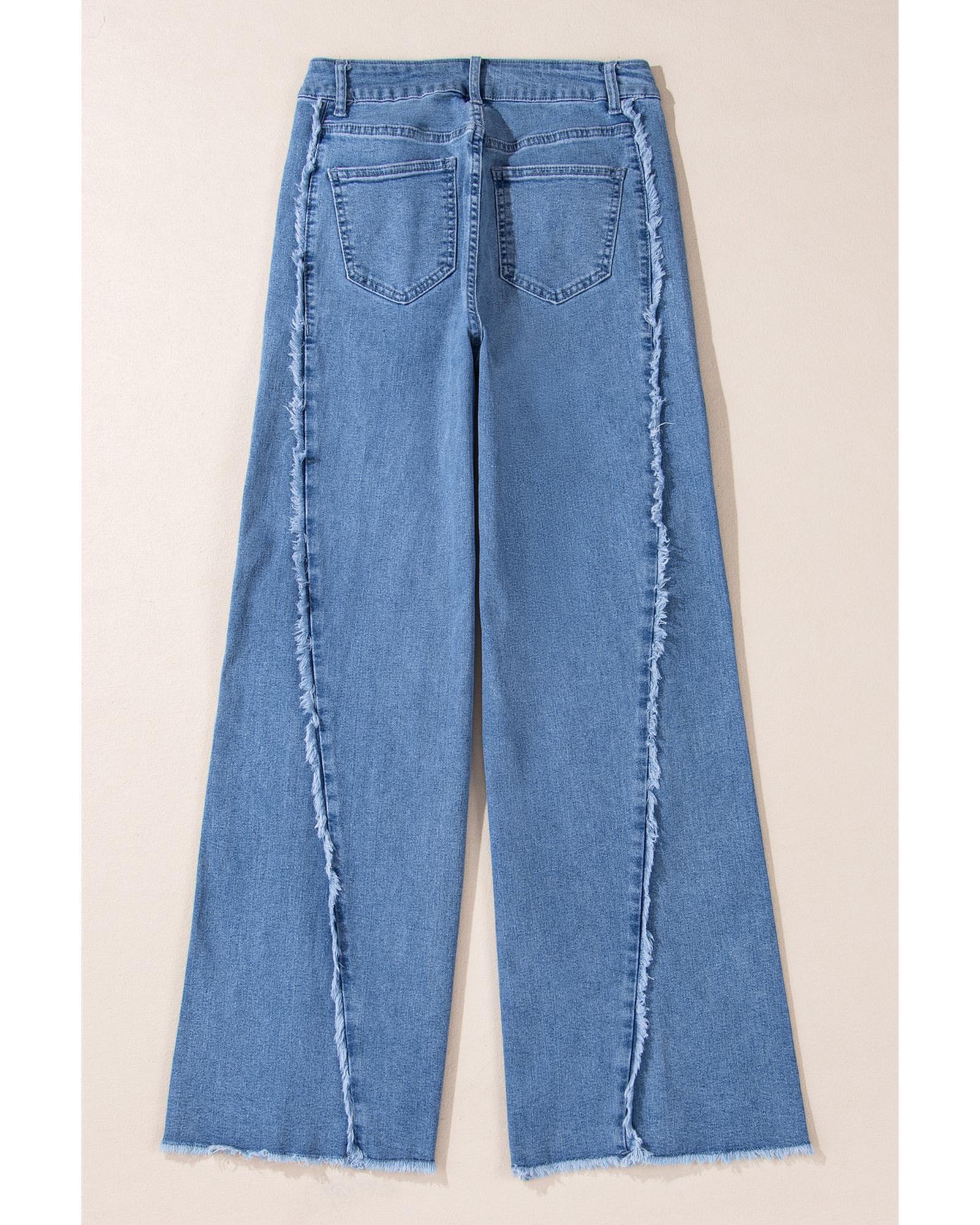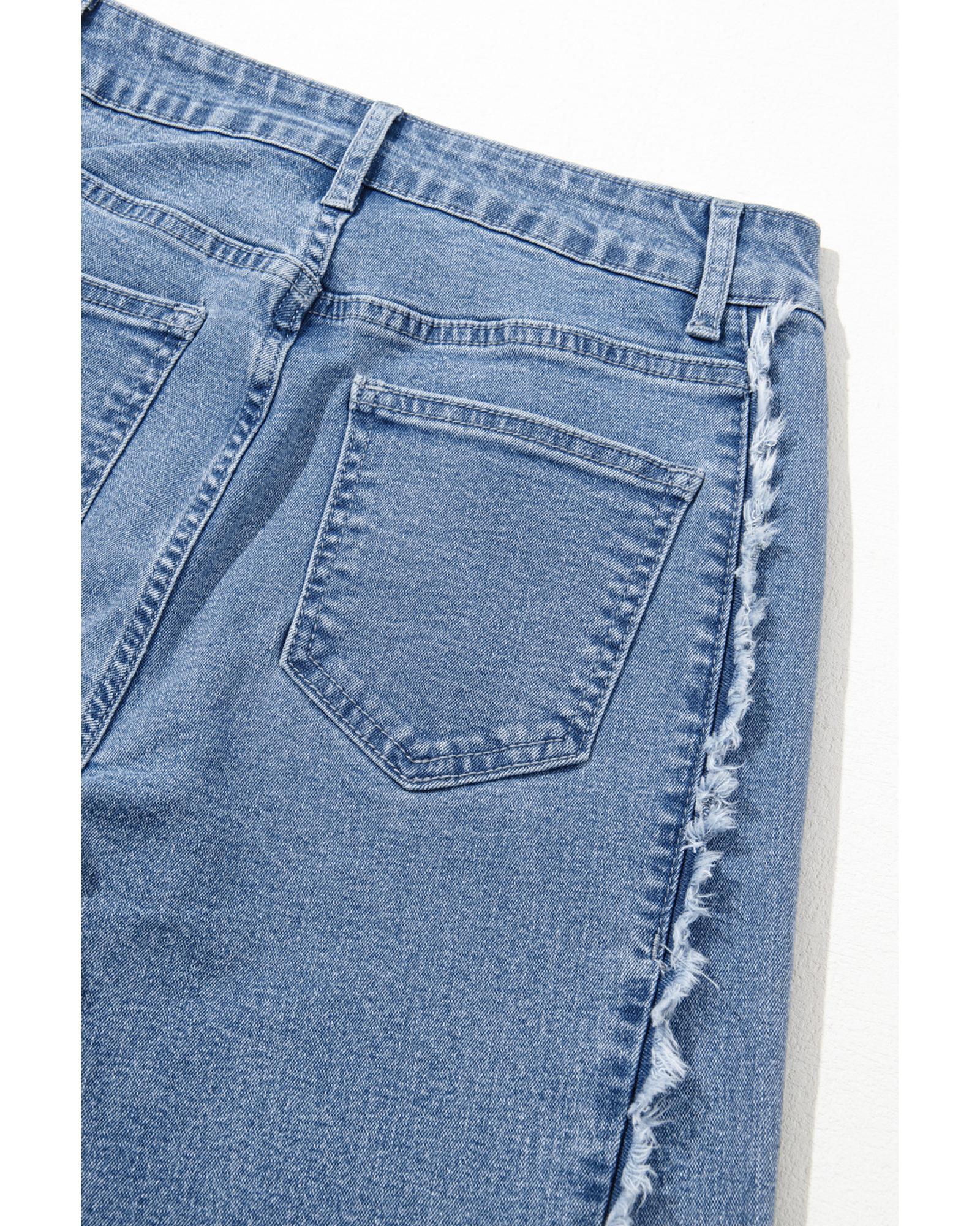 Beau Blue Vintage Stitching Raw Hem Flared Jeans - 6 US