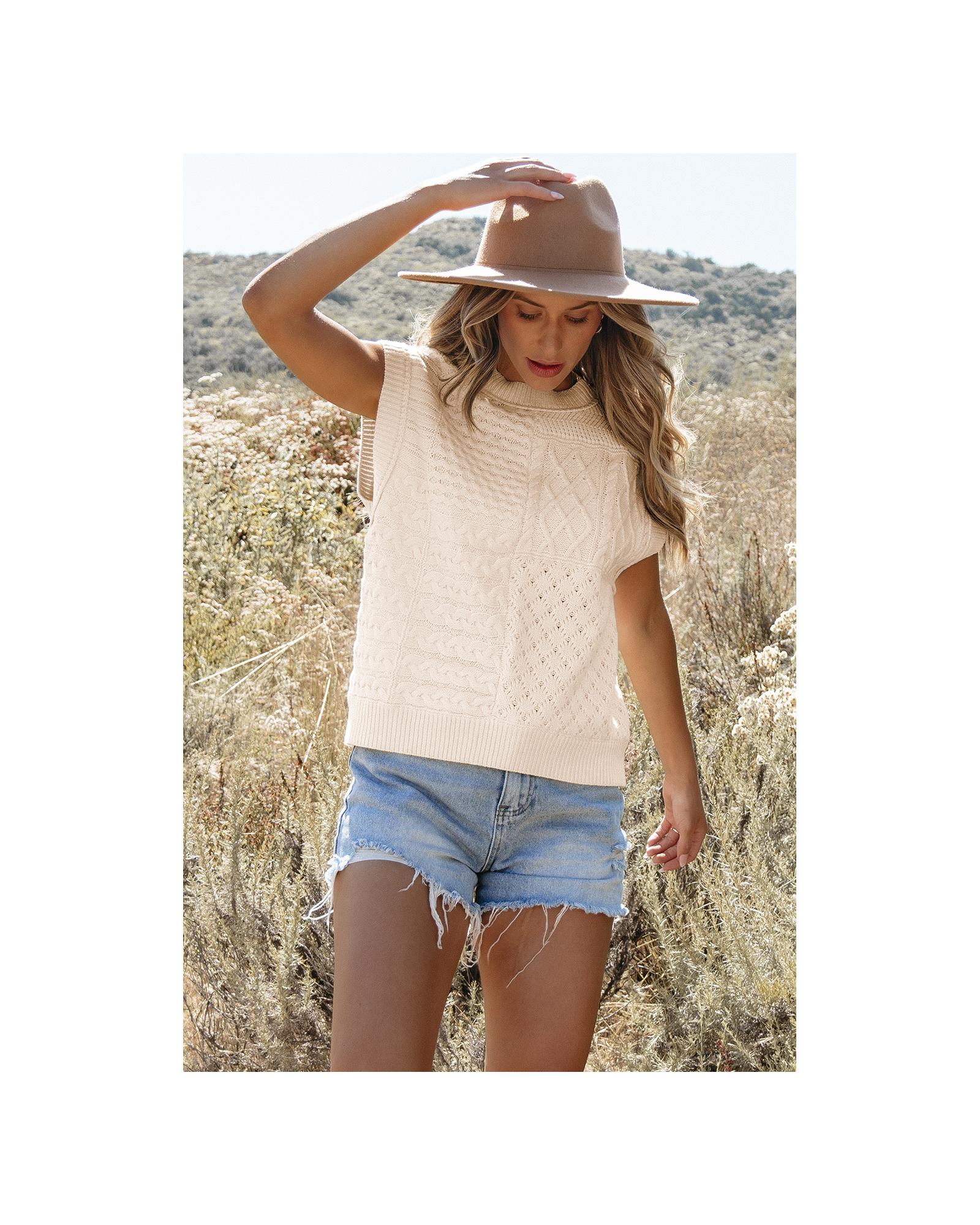 - Cool and classic Beige Cable Knit Dolman Armholes Sweater Tank