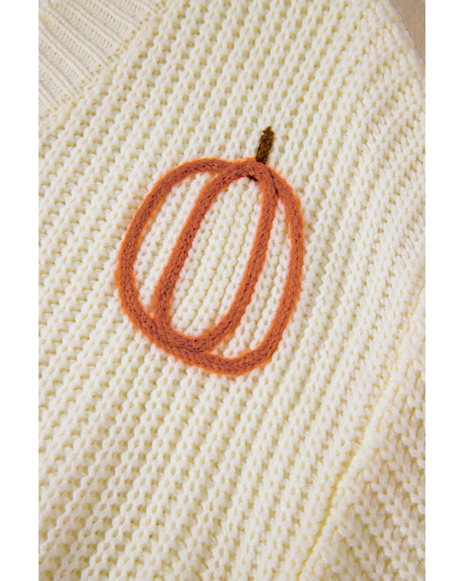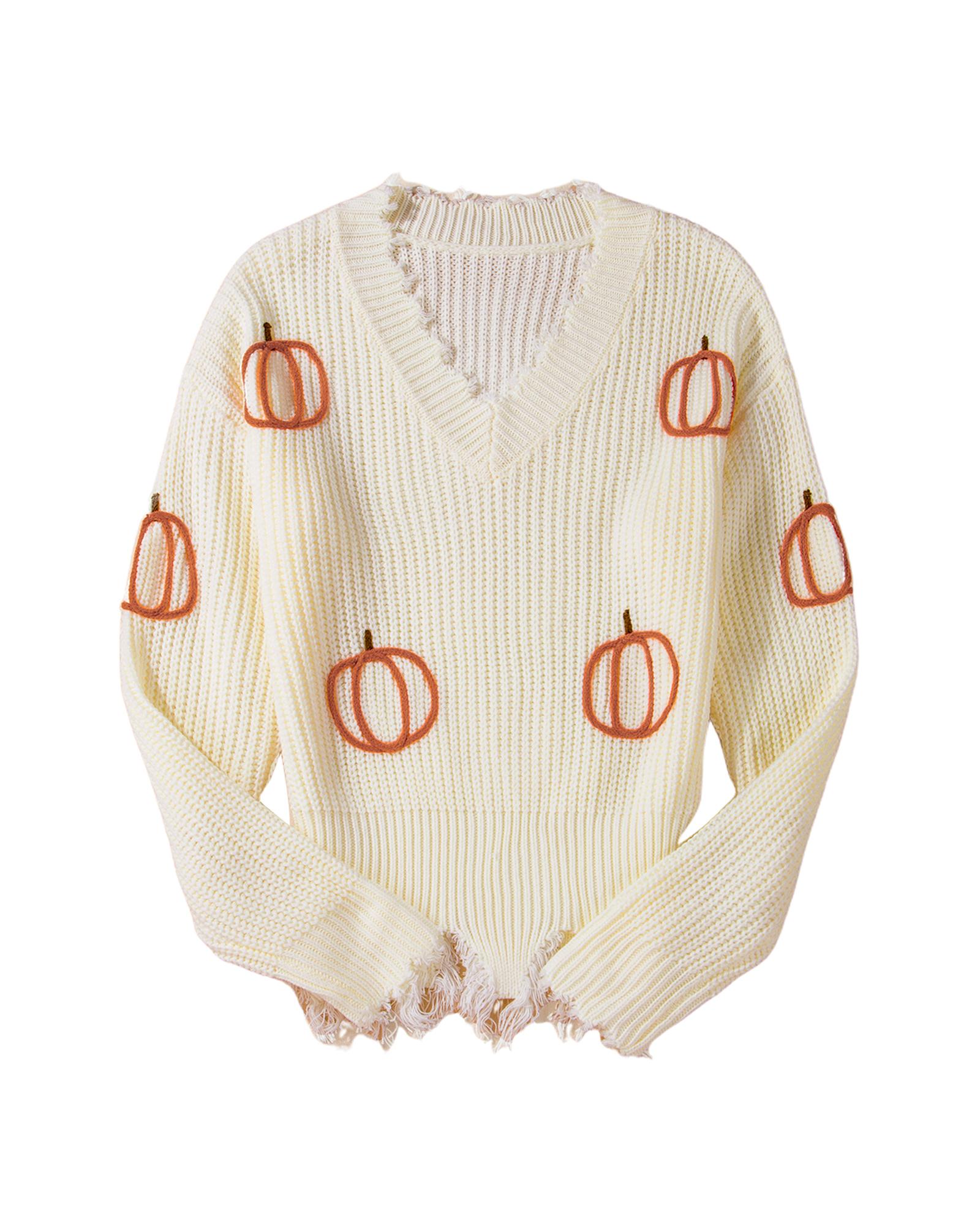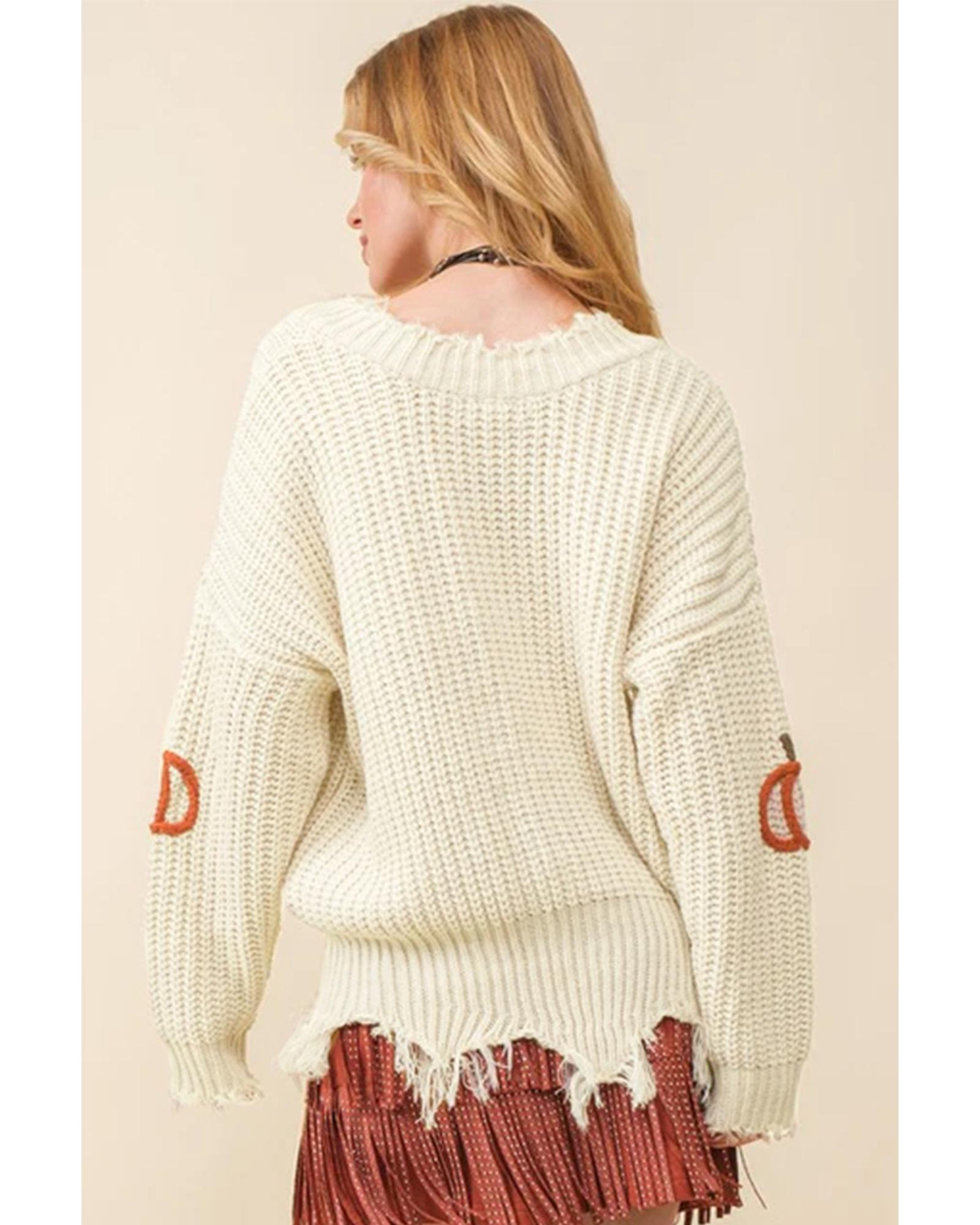 Beige Cable Knit Pumpkin Raw Hem V Neck Loose Sweater – XL
