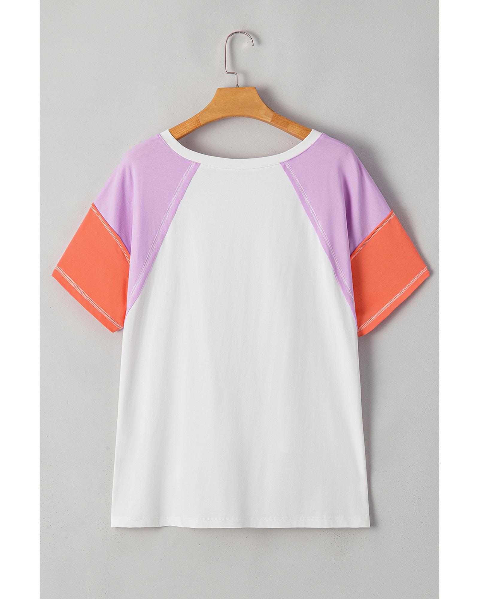Beige Colorblock Patchwork V Neck Exposed Seam High Low T Shirt – XL