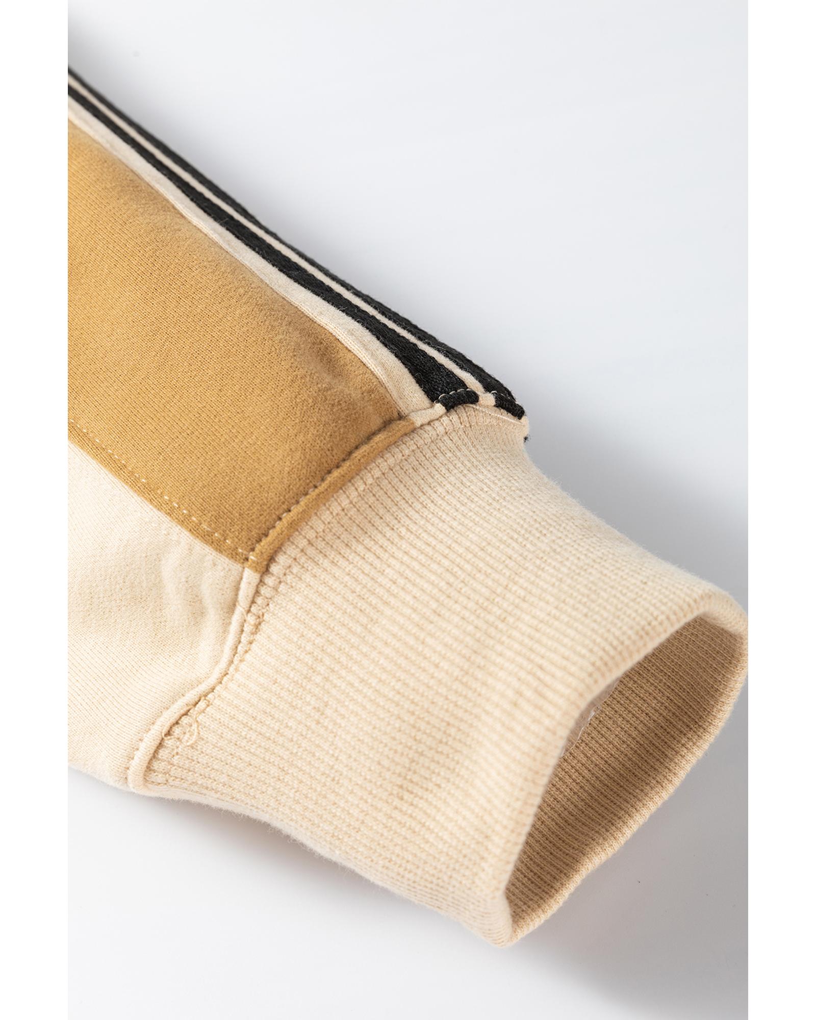 Beige Contrast Striped Patchwork Drop Shoulder Loose Sweatshirt – S
