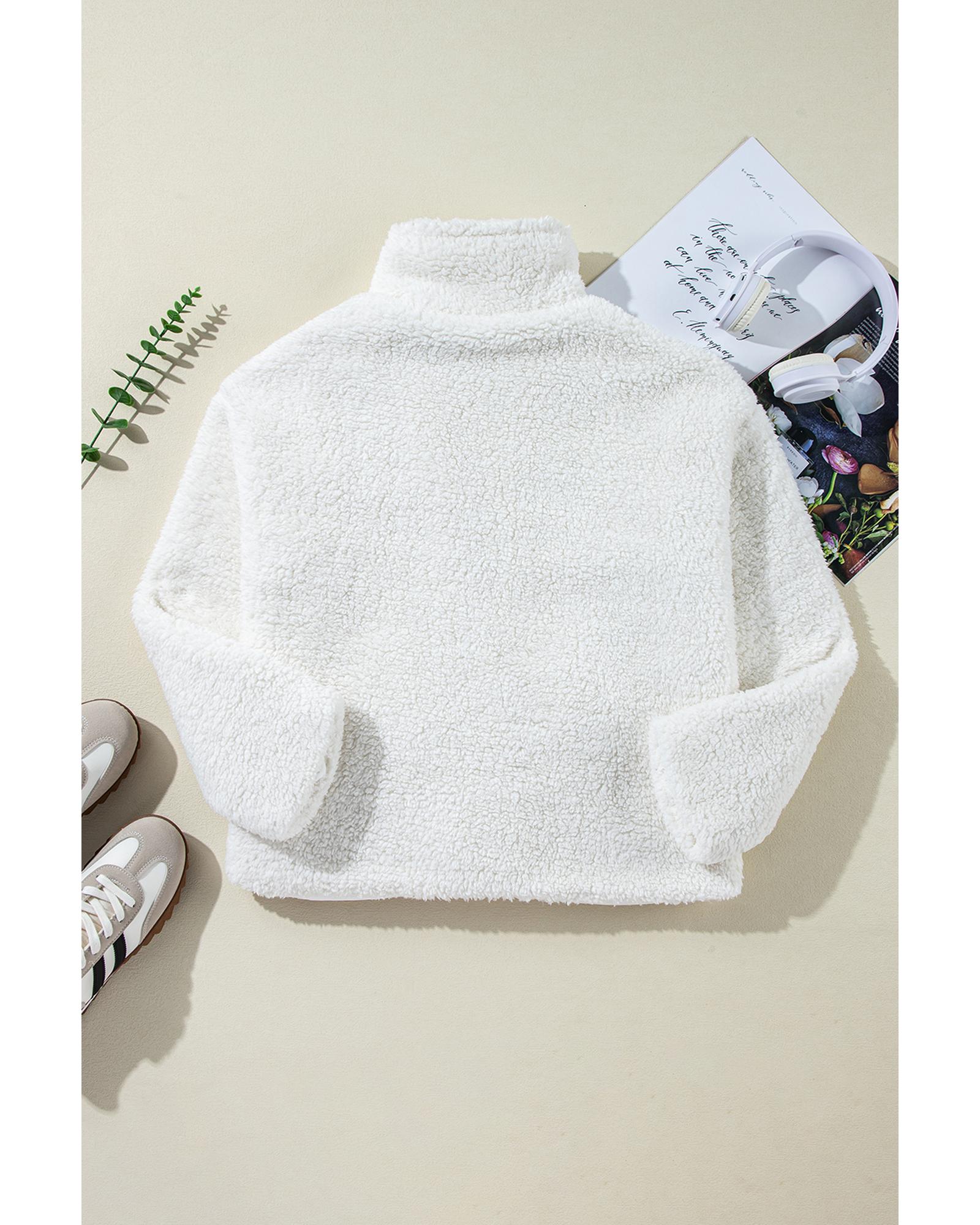 Beige Faux Fur Button Pocketed Lapel Collar Jacket – L