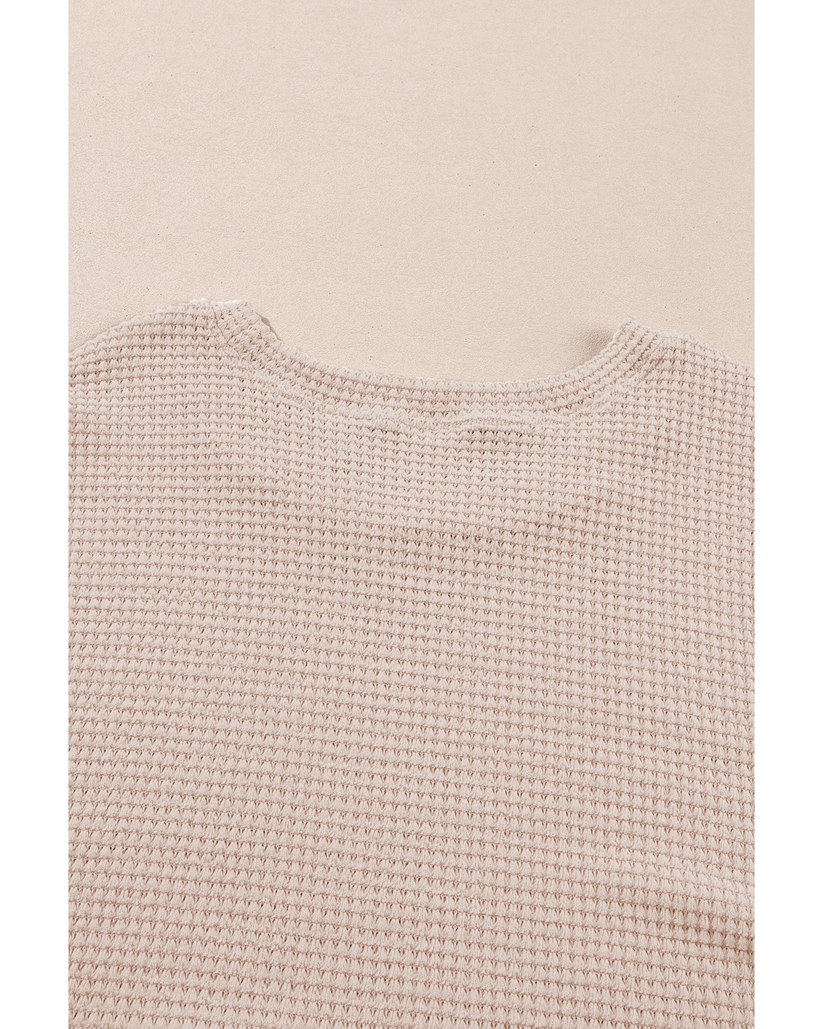 Beige Faux Two Piece Knit Patchwork Floral Print Plus Size Top – 2X