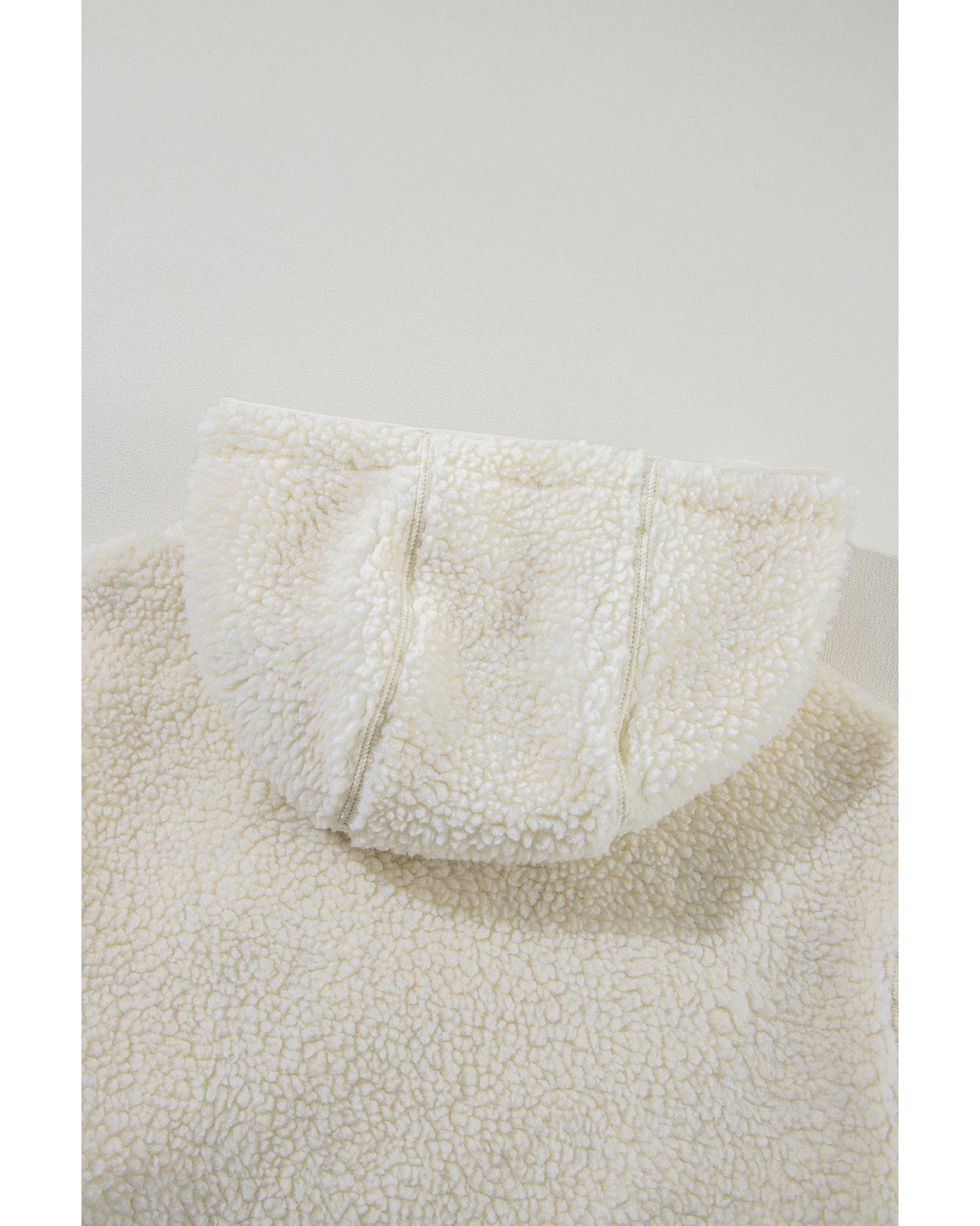 Beige Fleece Zip Up Drawstring Hooded Pocketed Jacket – XL