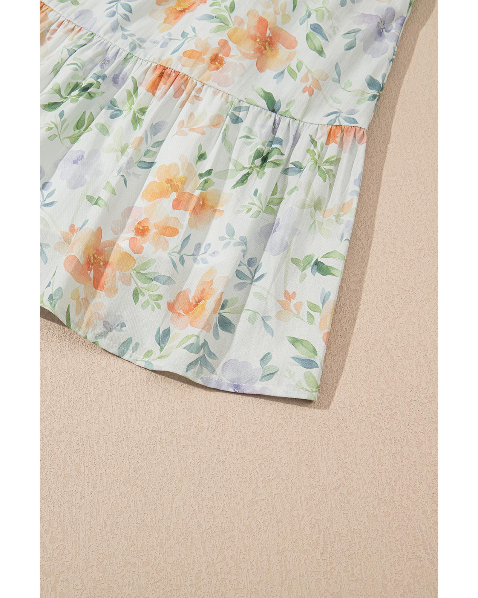 Beige Floral Print Shirred High Waist Puff Sleeve Mini Dress – XL