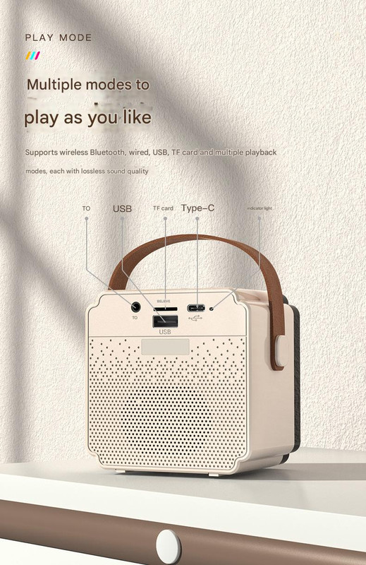 • Multiple Playback Modes: Besides Bluetooth, play music via AUX input, USB drive, or TF card, offering versatile options for your audio sources.