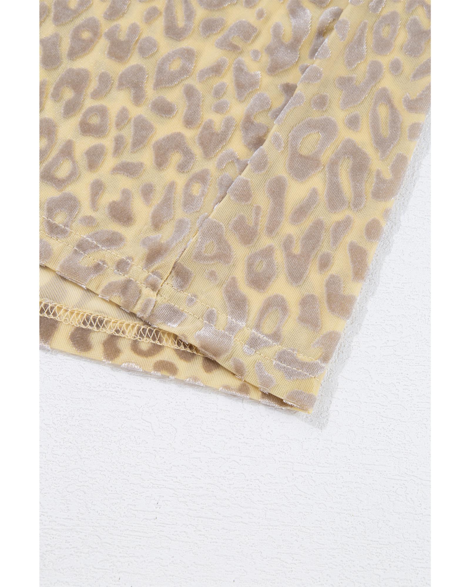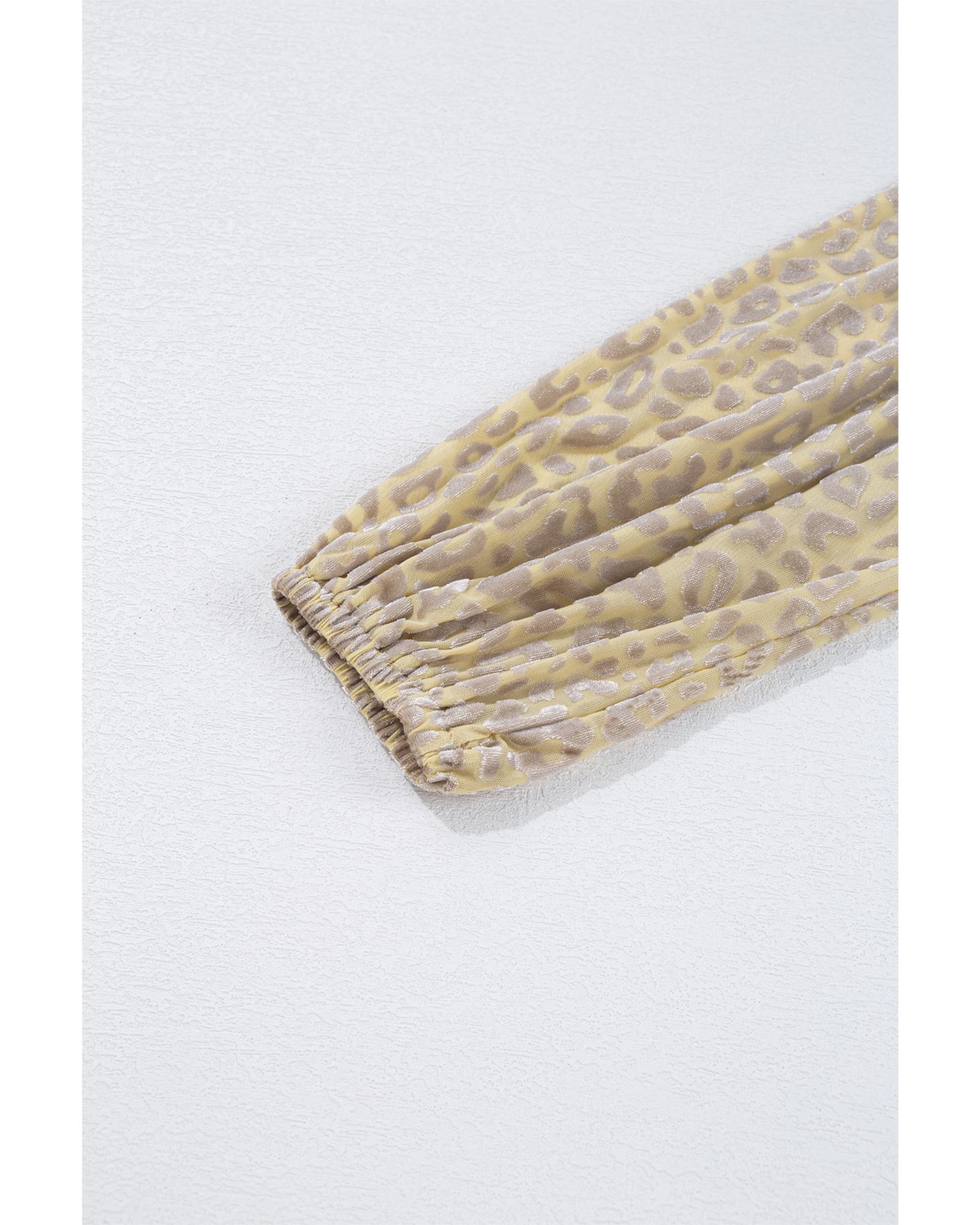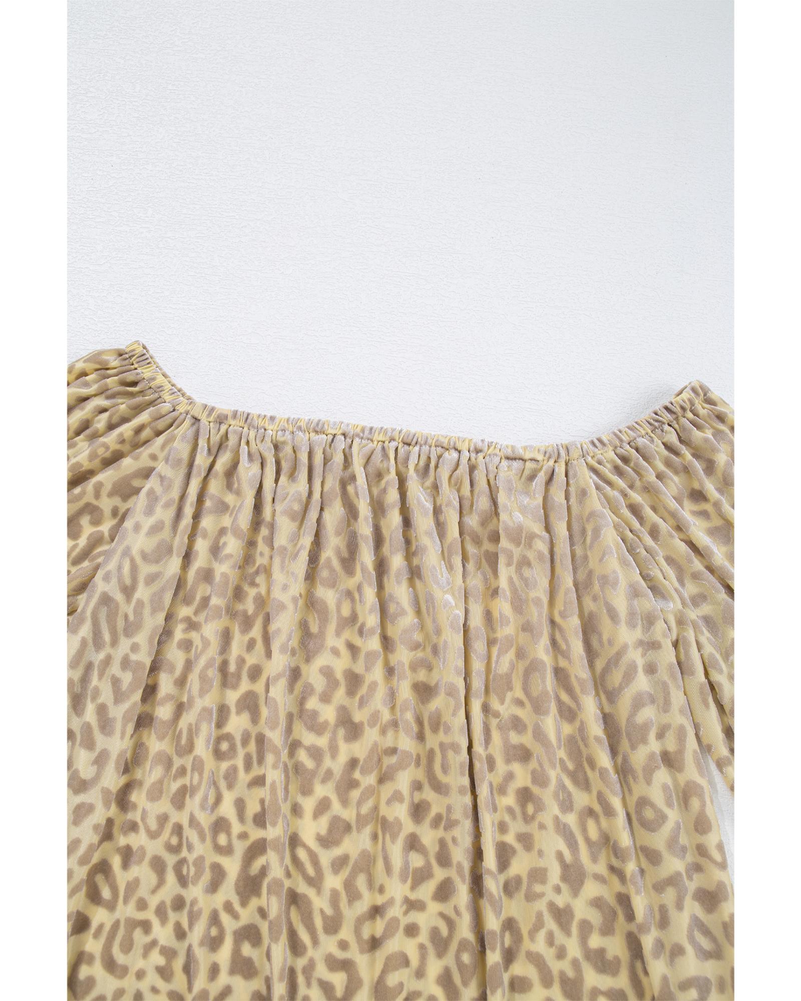 Beige Leopard Velvet Burnout Off Shoulder Long Sleeve Blouse – M