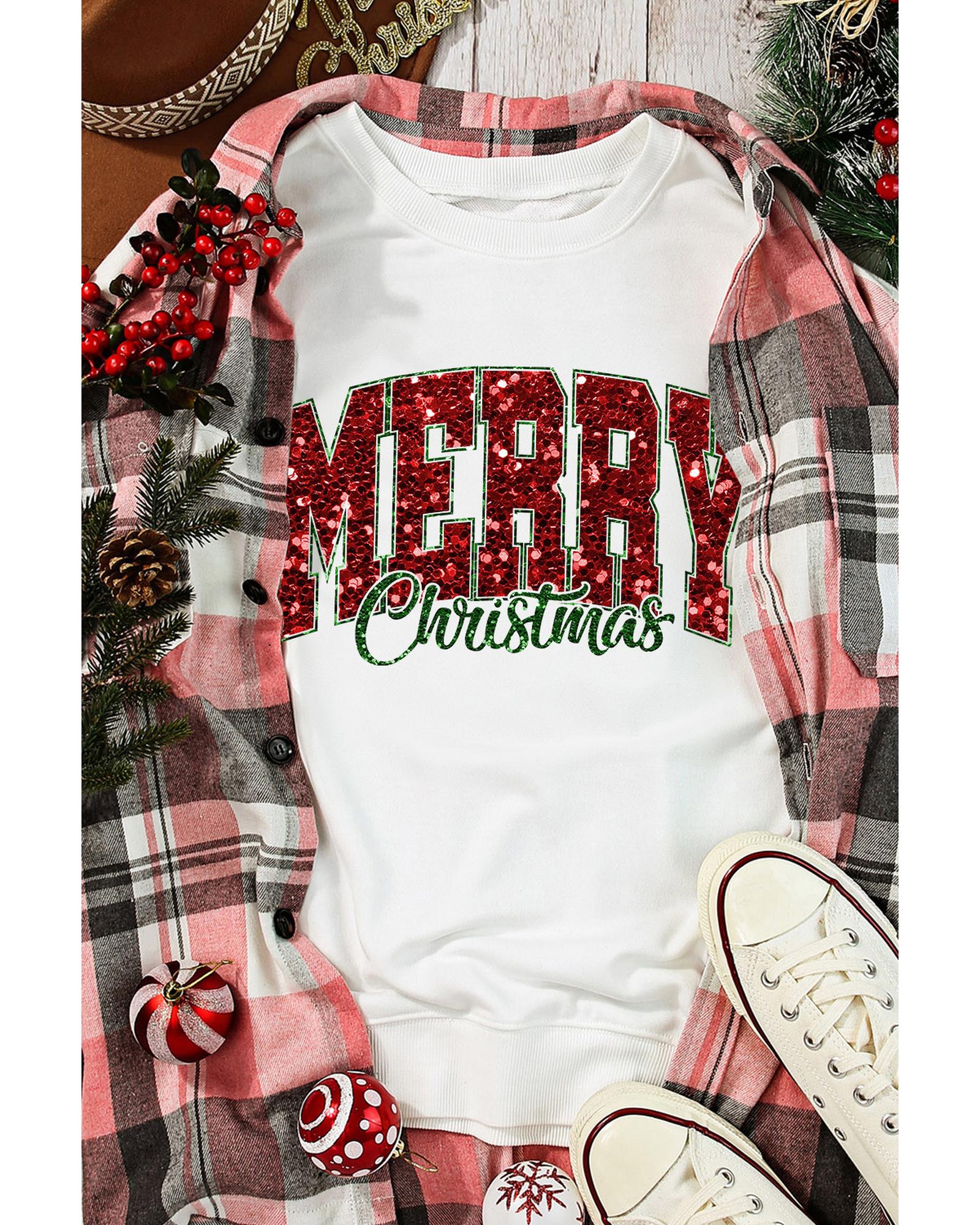 Beige MERRY Christmas Heat Transfer Printing Crewneck Pullover Sweatshirt – XL
