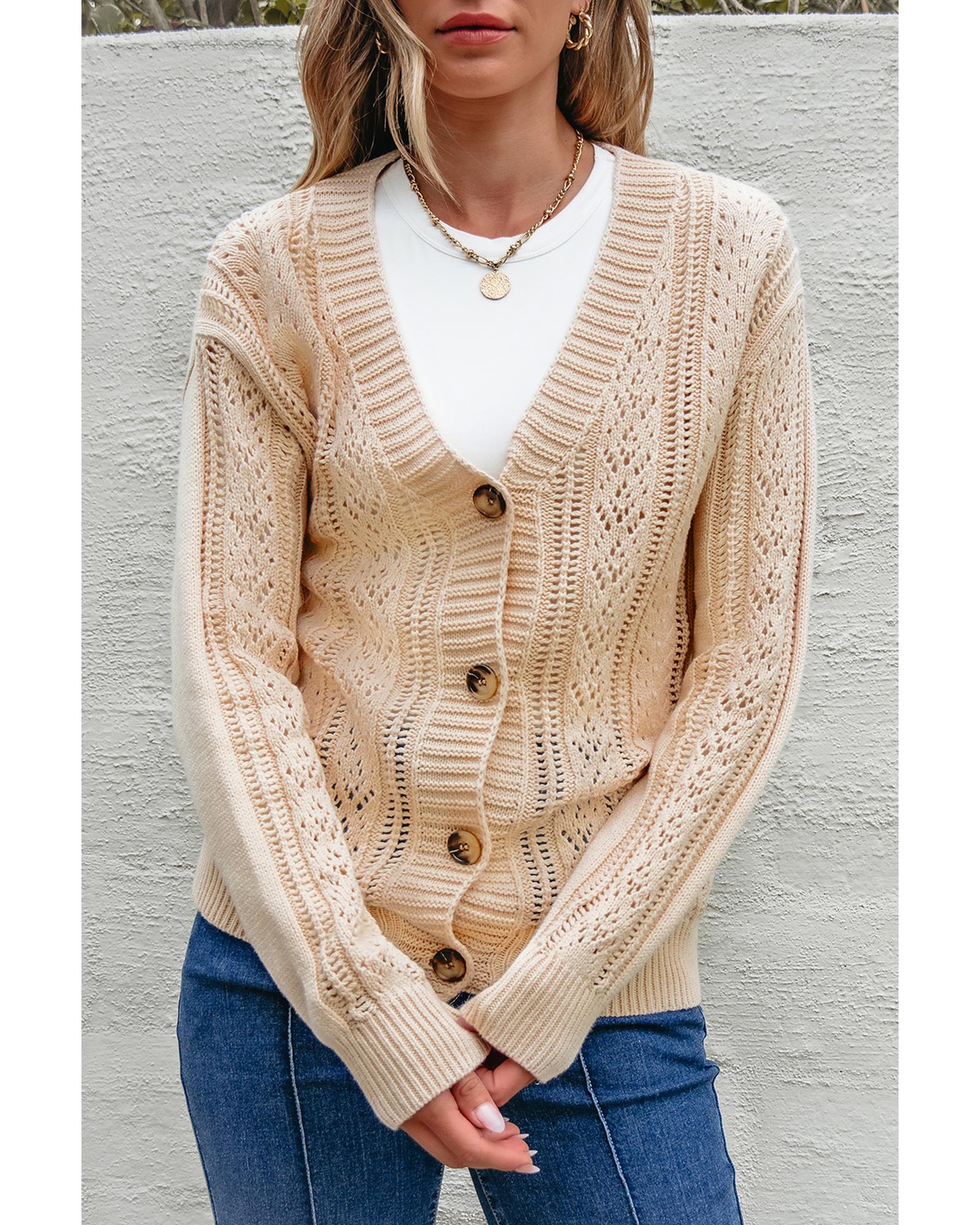 Beige Open Knit Drop Shoulder Sweater Cardigan – XL