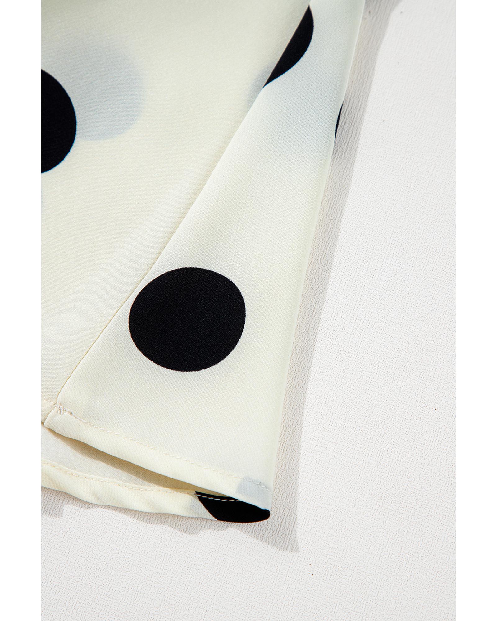 Beige Polka Dot Printed Surplice V Neck Puff Sleeve Mini Dress – S