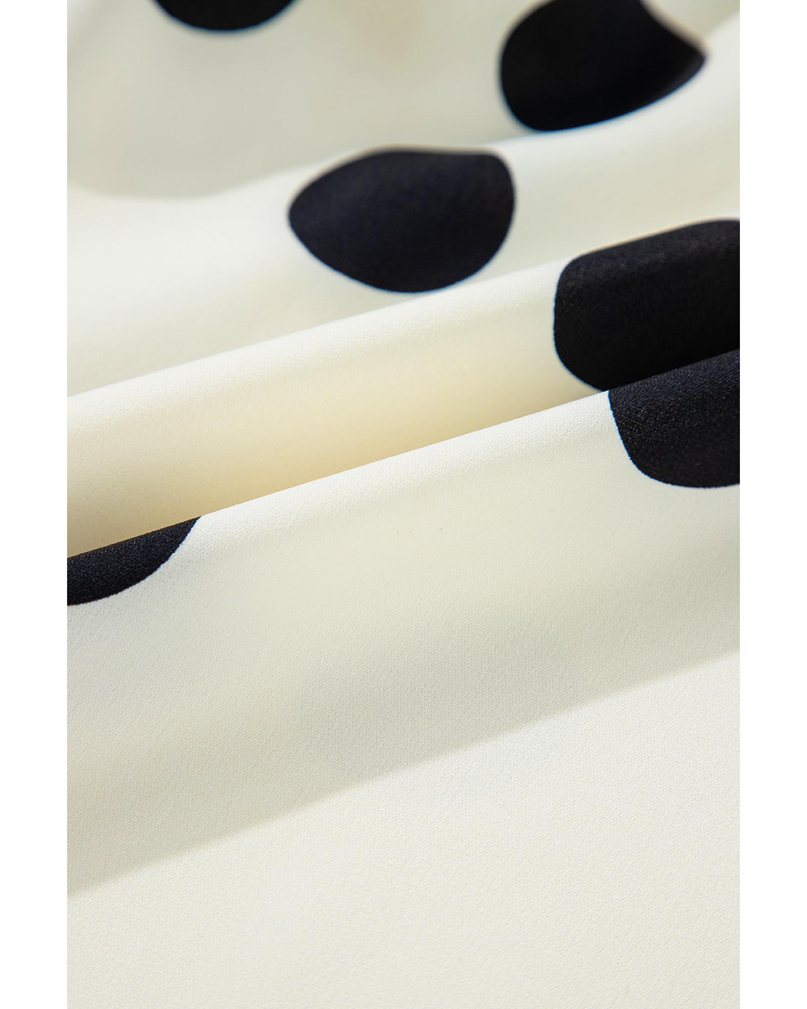 Beige Polka Dot Printed Surplice V Neck Puff Sleeve Mini Dress – XL