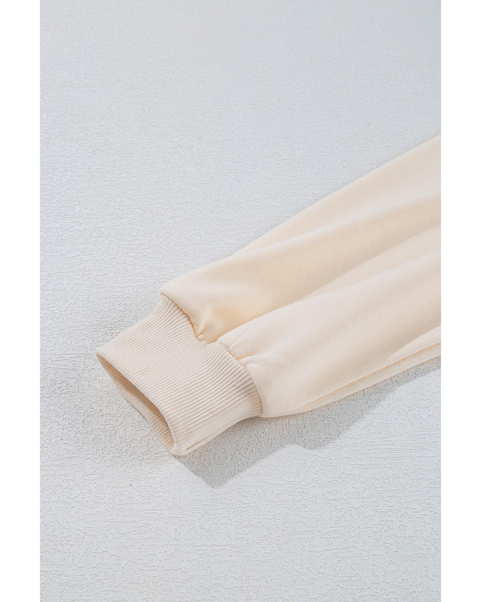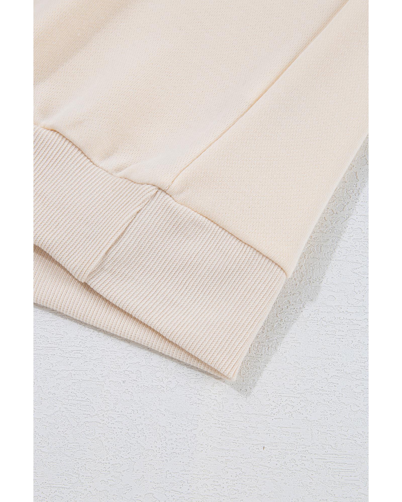 Beige Pom-Pom Christmas Tree Pattern O Neck Sweatshirt – L