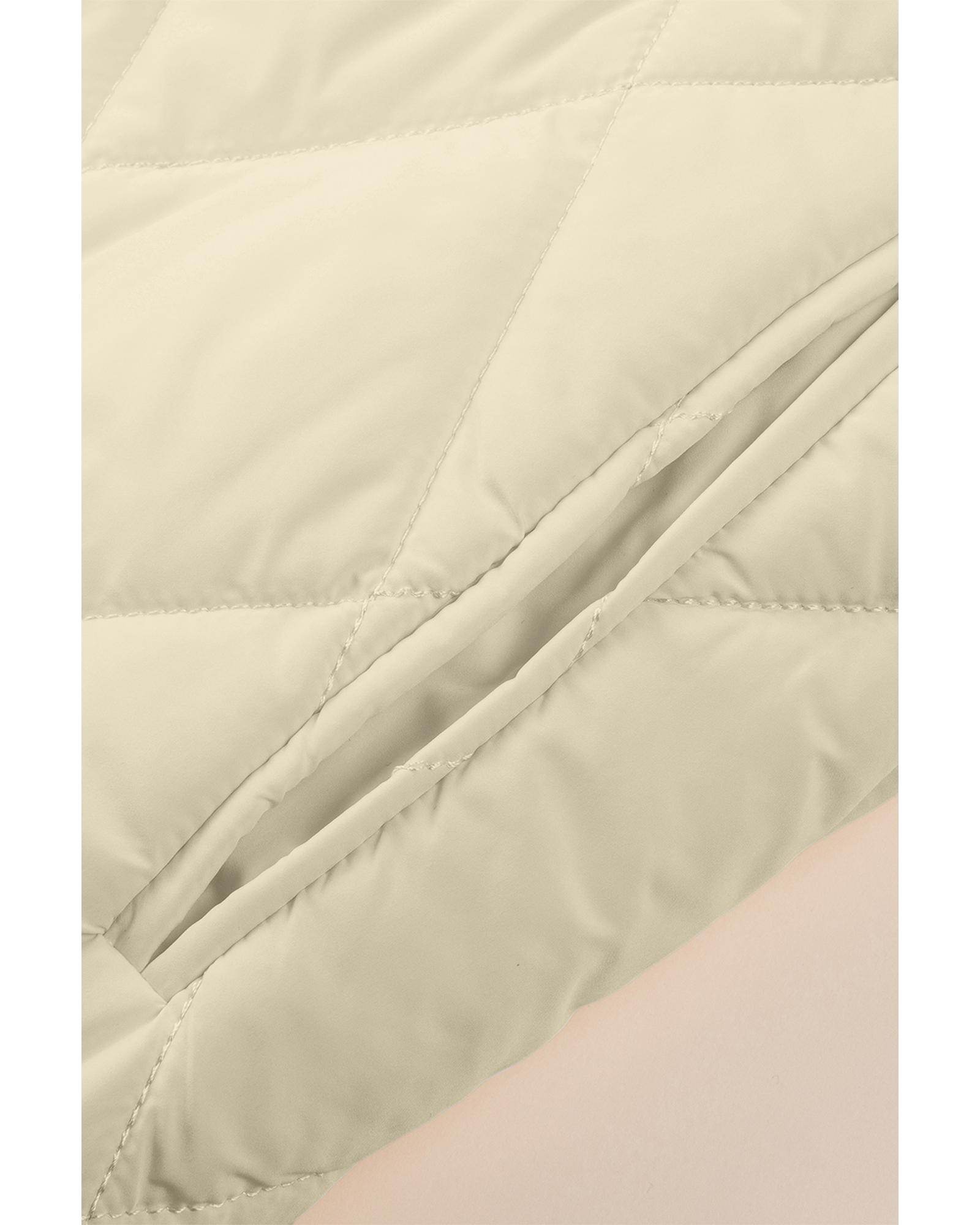 - Beige quilted snap button hooded coat