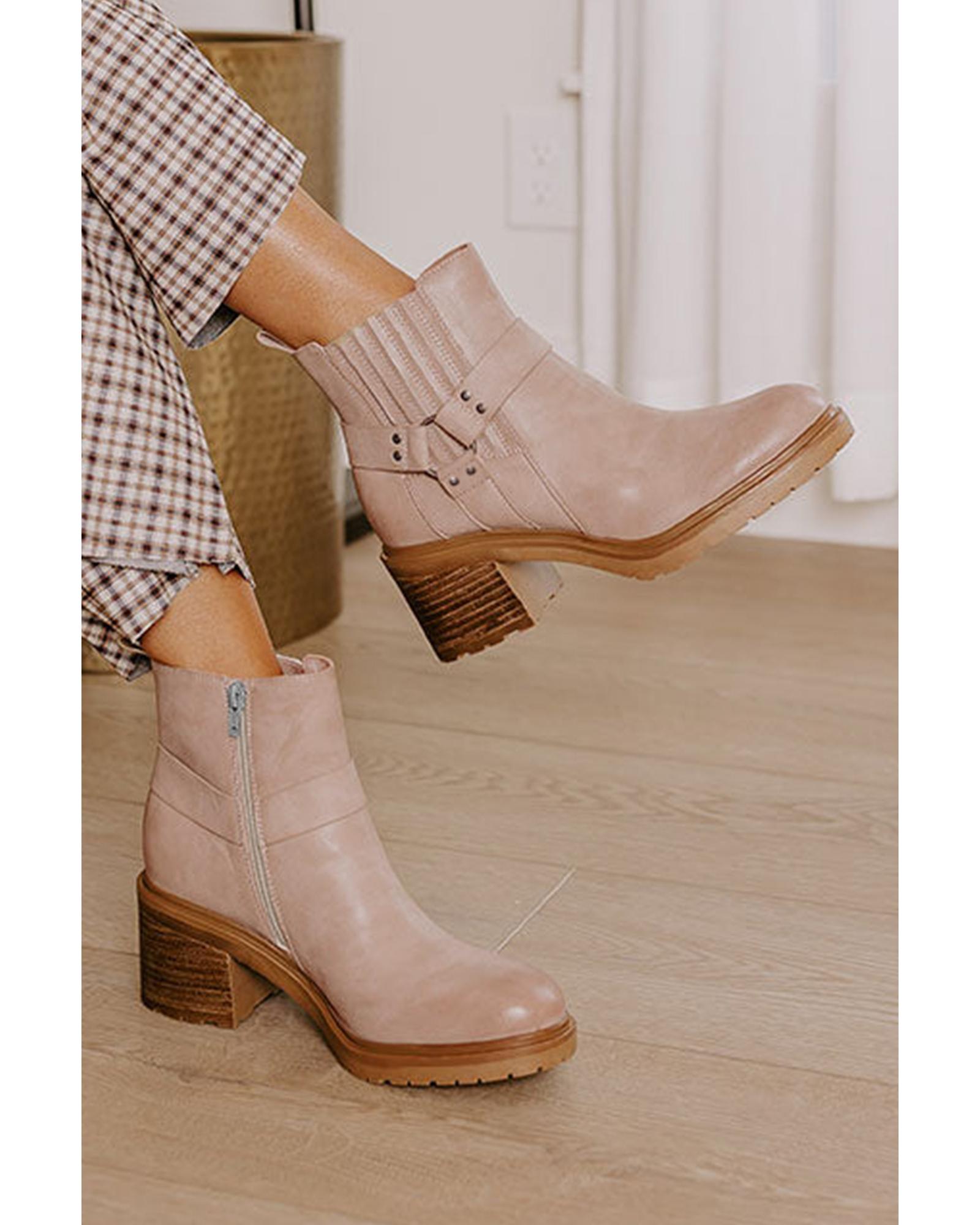 Beige Ring Linked Zipper Chunky Heel Ankle Boots – 39 EU