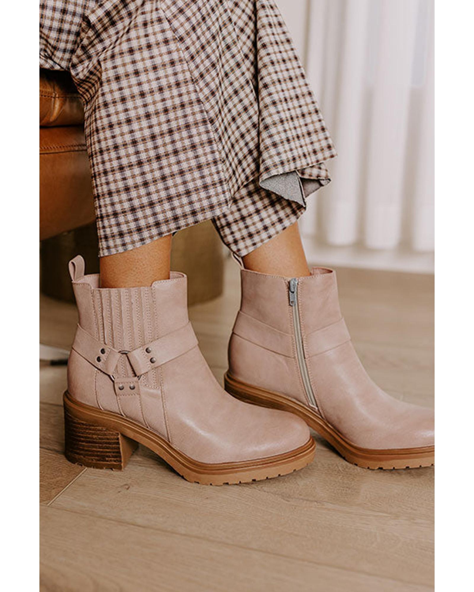 Beige Ring Linked Zipper Chunky Heel Ankle Boots – 40 EU