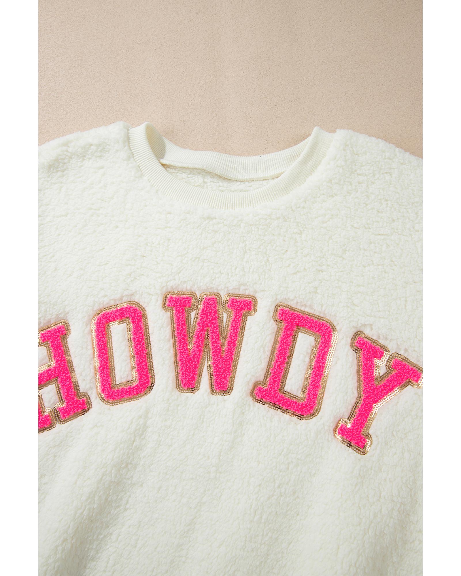 • Beige Sherpa HOWDY Patched Pullover Sweatshirt